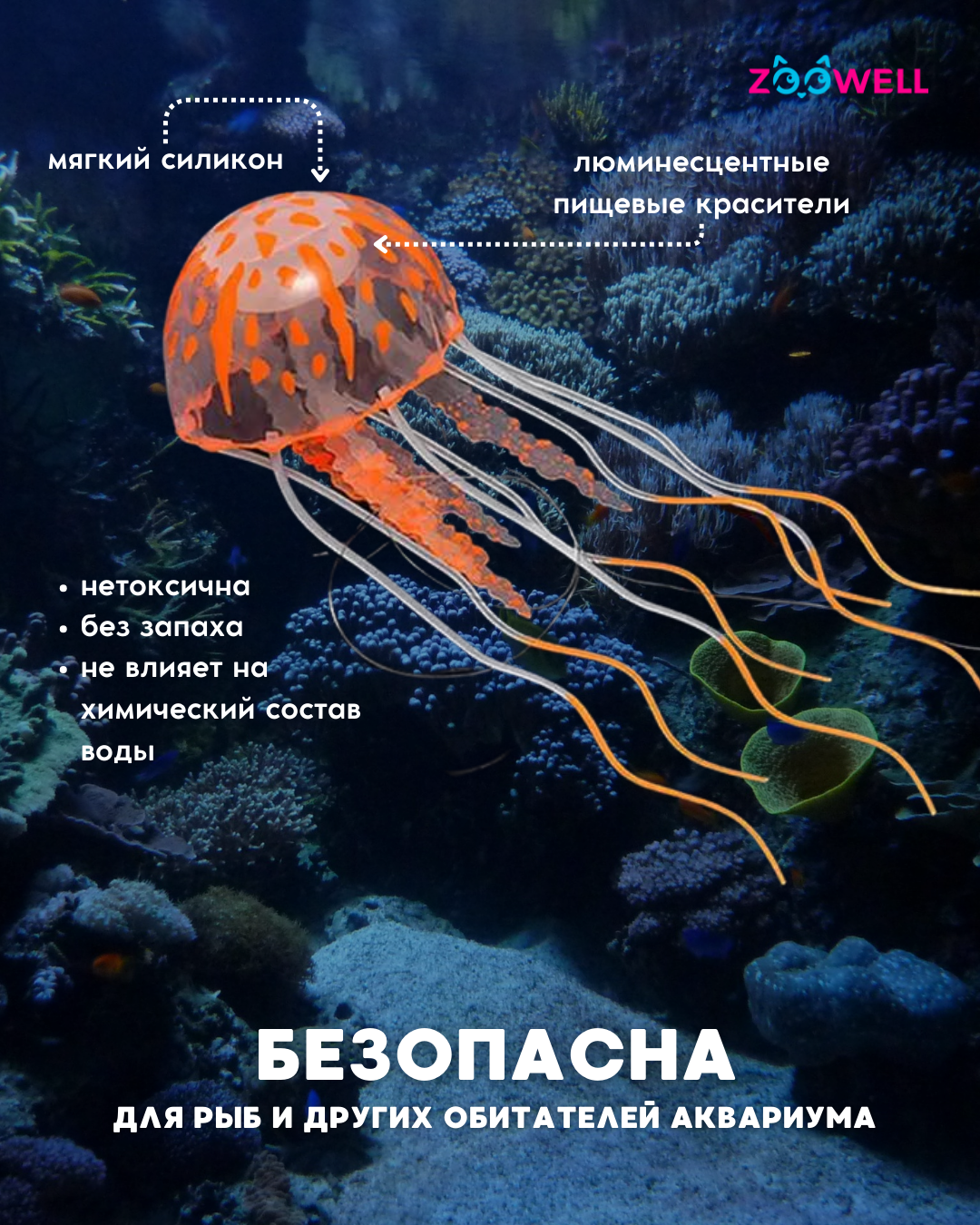 Ниже Вы можете прочитать отзывы на Декор для аквариума флуоресцентный ZooWell Neon Light (Медуза светящаяся), цвет оранжевый, ознакомится с подробными характеристиками, посмотреть интересные обзоры и фотографии на Декор для аквариума флуоресцентный ZooWell Neon Light (Медуза светящаяся), цвет оранжевый.