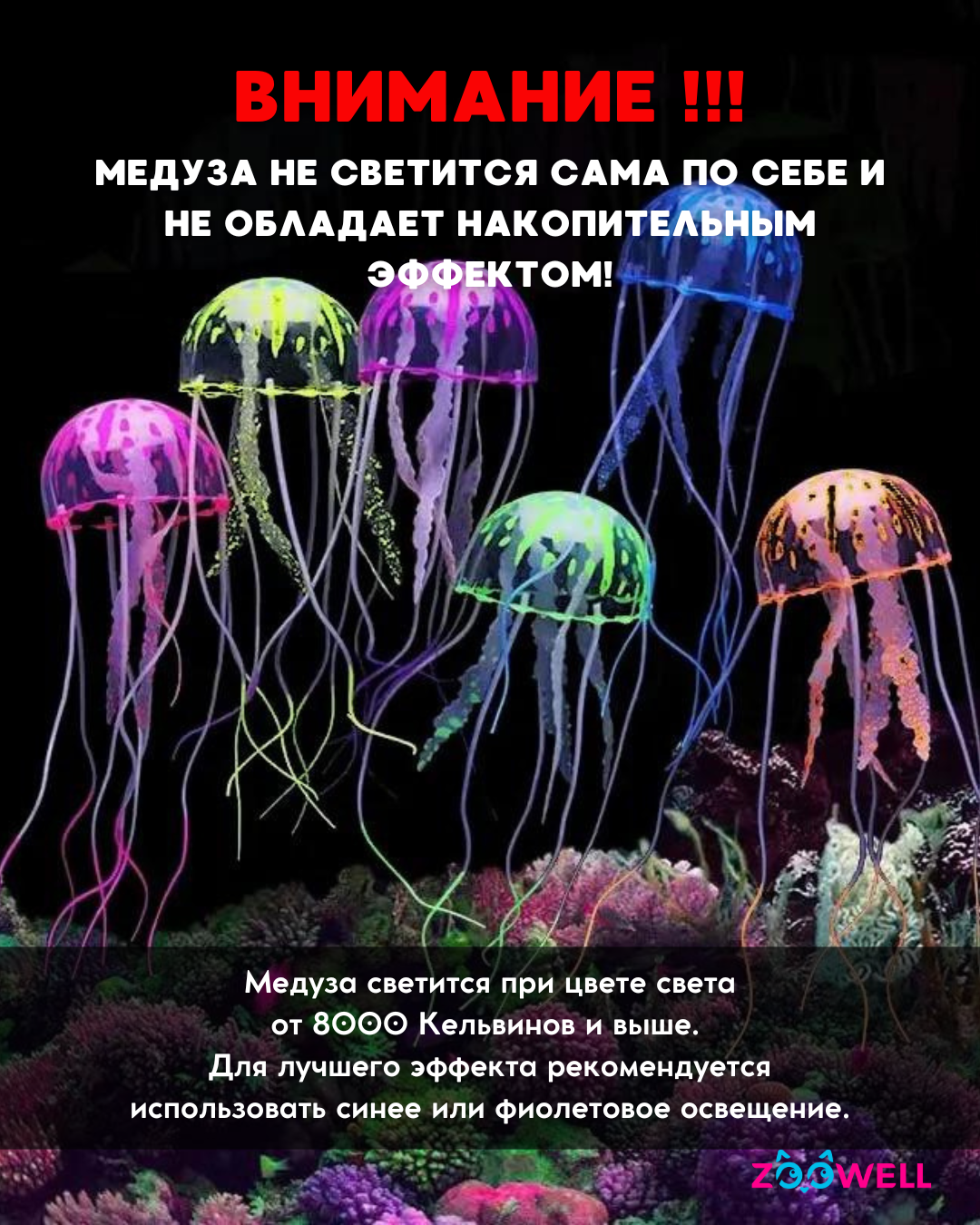 СохранитьДекорация для аквариума флуоресцентная ZooWell Neon Light (Медуза светящаяся), цвет зеленый интересное: