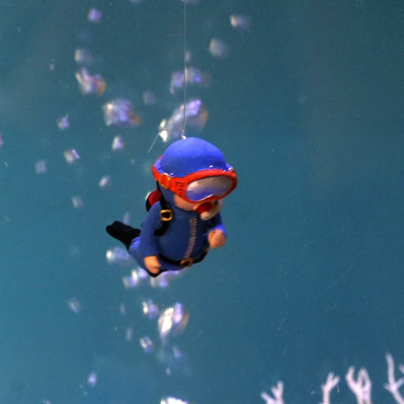Аквариумный декоративный аквалангист плавающий синий 6*3.5CM интересное: