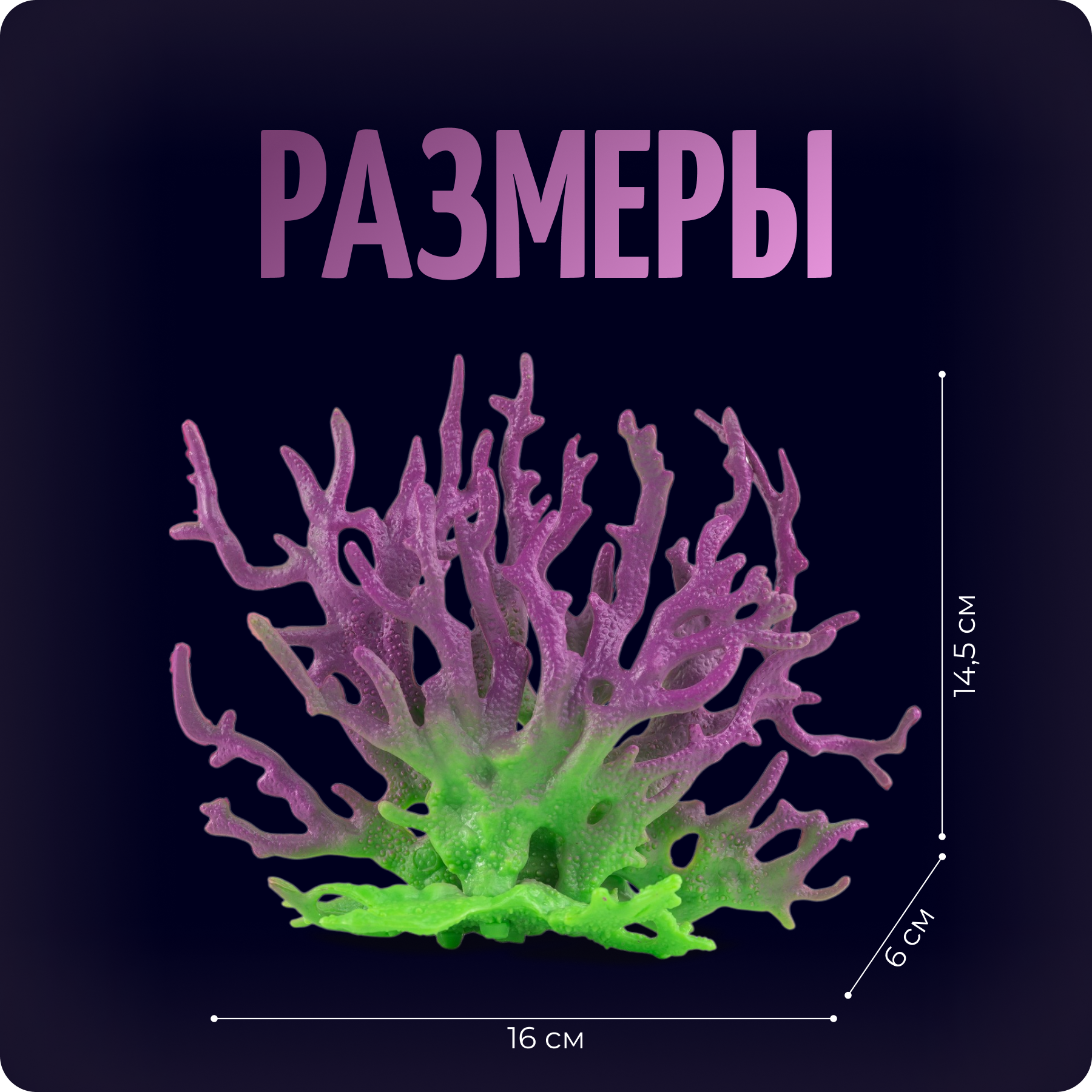 СохранитьДекор для аквариума, коралл фиолетовый - зеленый, 14,5 см, COLOR Si интересное: