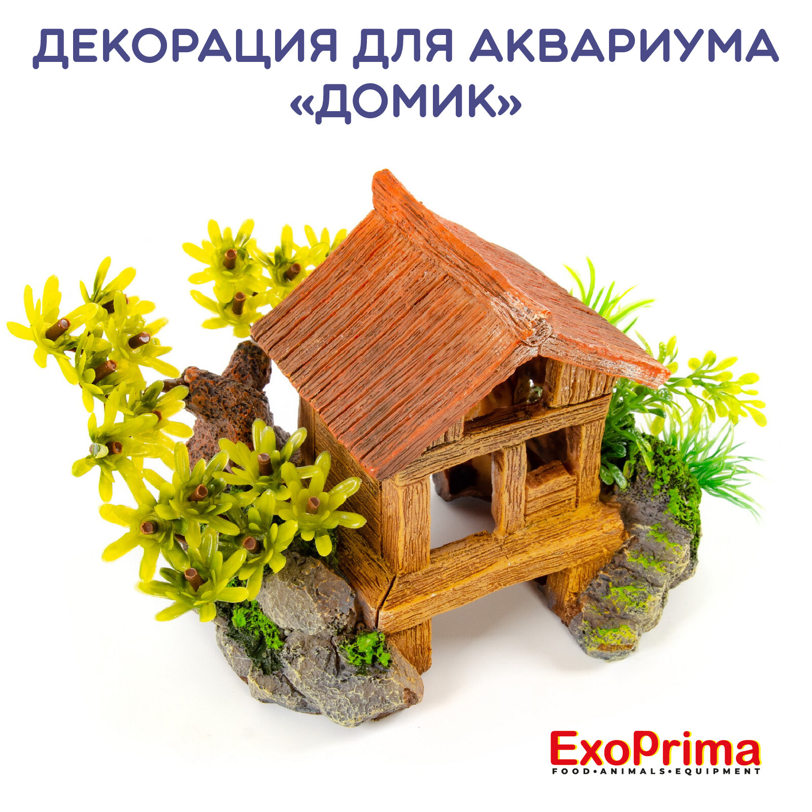 Купить Декорация EXOPRIMA "Домик", для аквариума и террариума, 17,5х11,5х10 см, коричневая