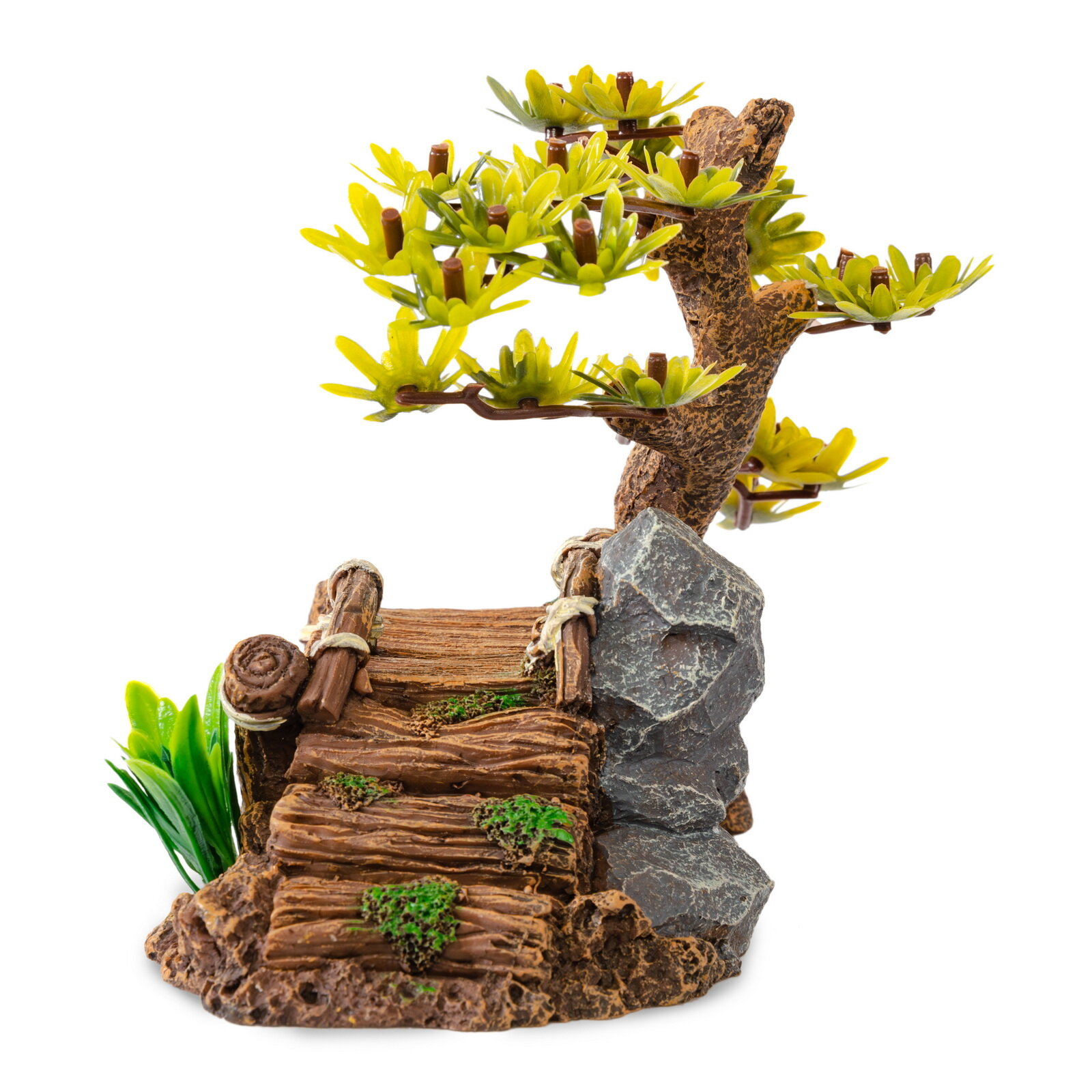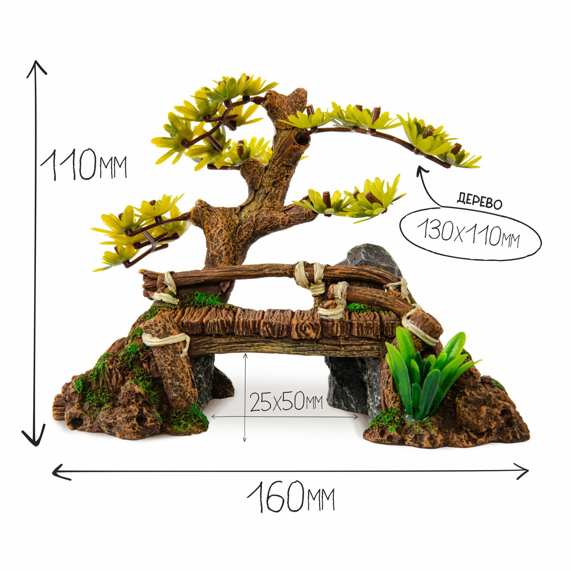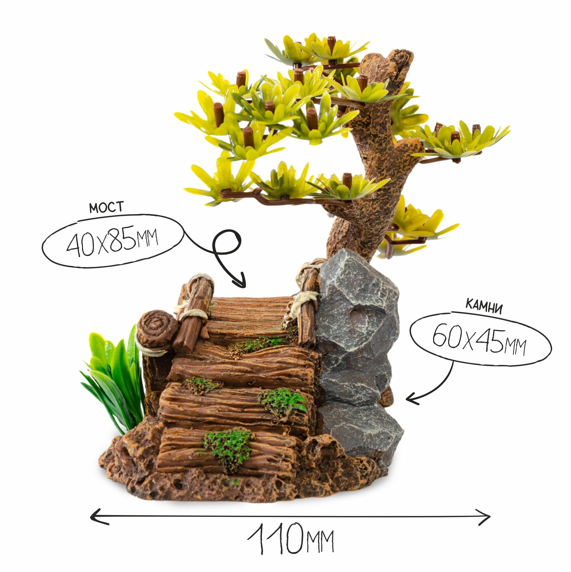 Декорация для аквариумов и террариумов EXOPRIMA " Коряга с растением" 12х9х8.5см