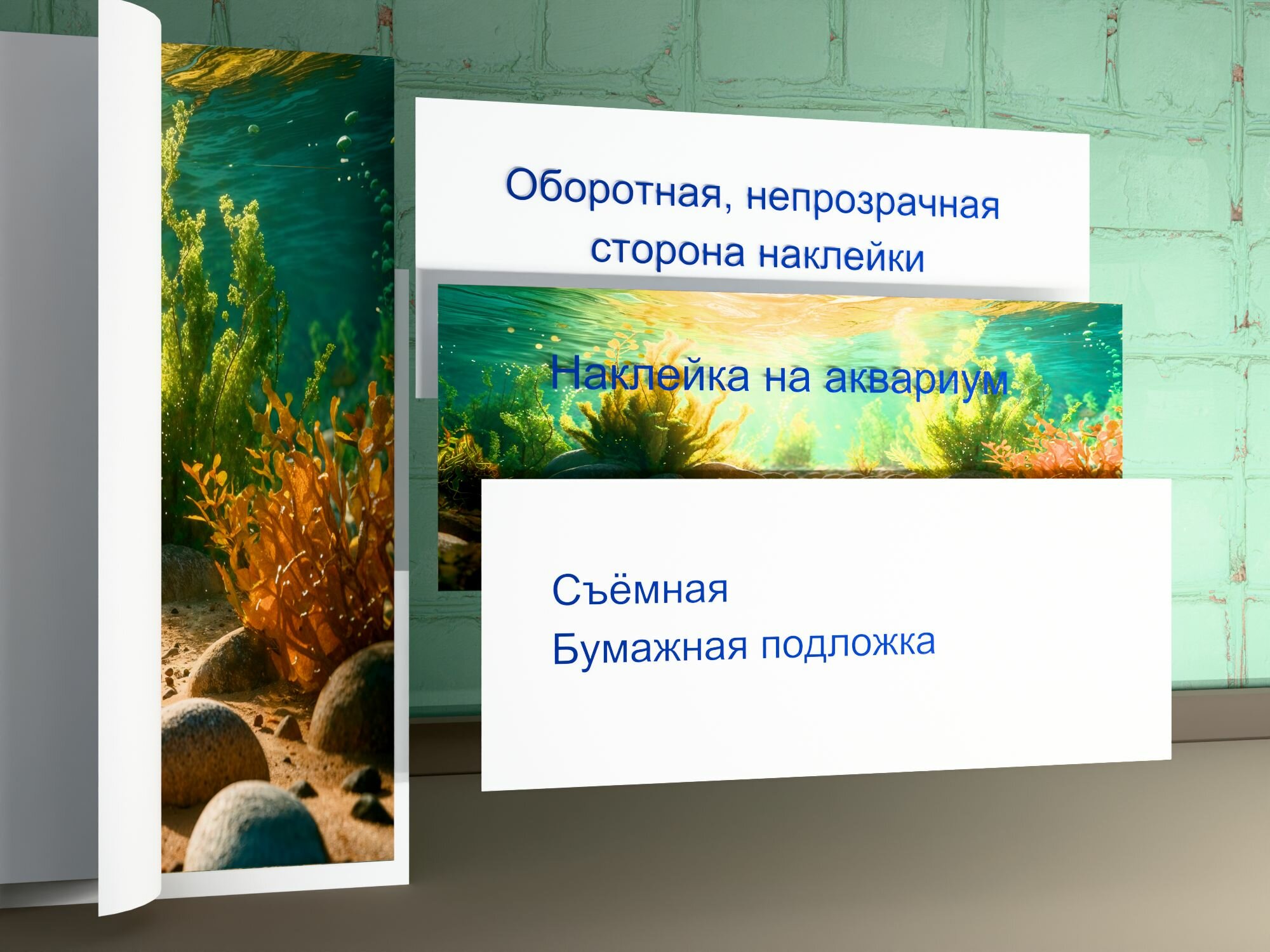 Фон для аквариума Садко 100х50см. Интерьерная печать на европейской самоклейке. Непрозрачная, односторонний, клеится снаружи.