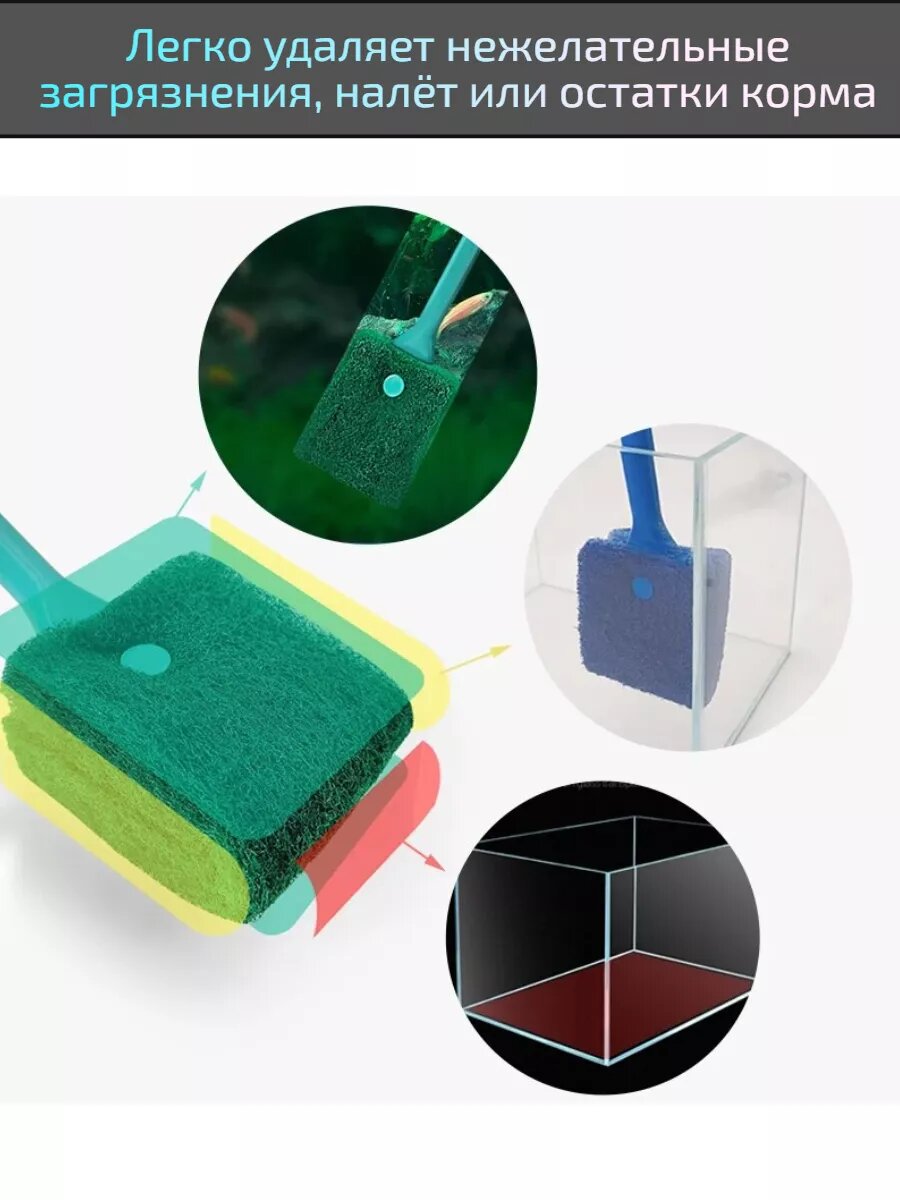 Скребок для аквариума JustMarket, с ручкой, синий/зеленый, для чистки стекла интересное: