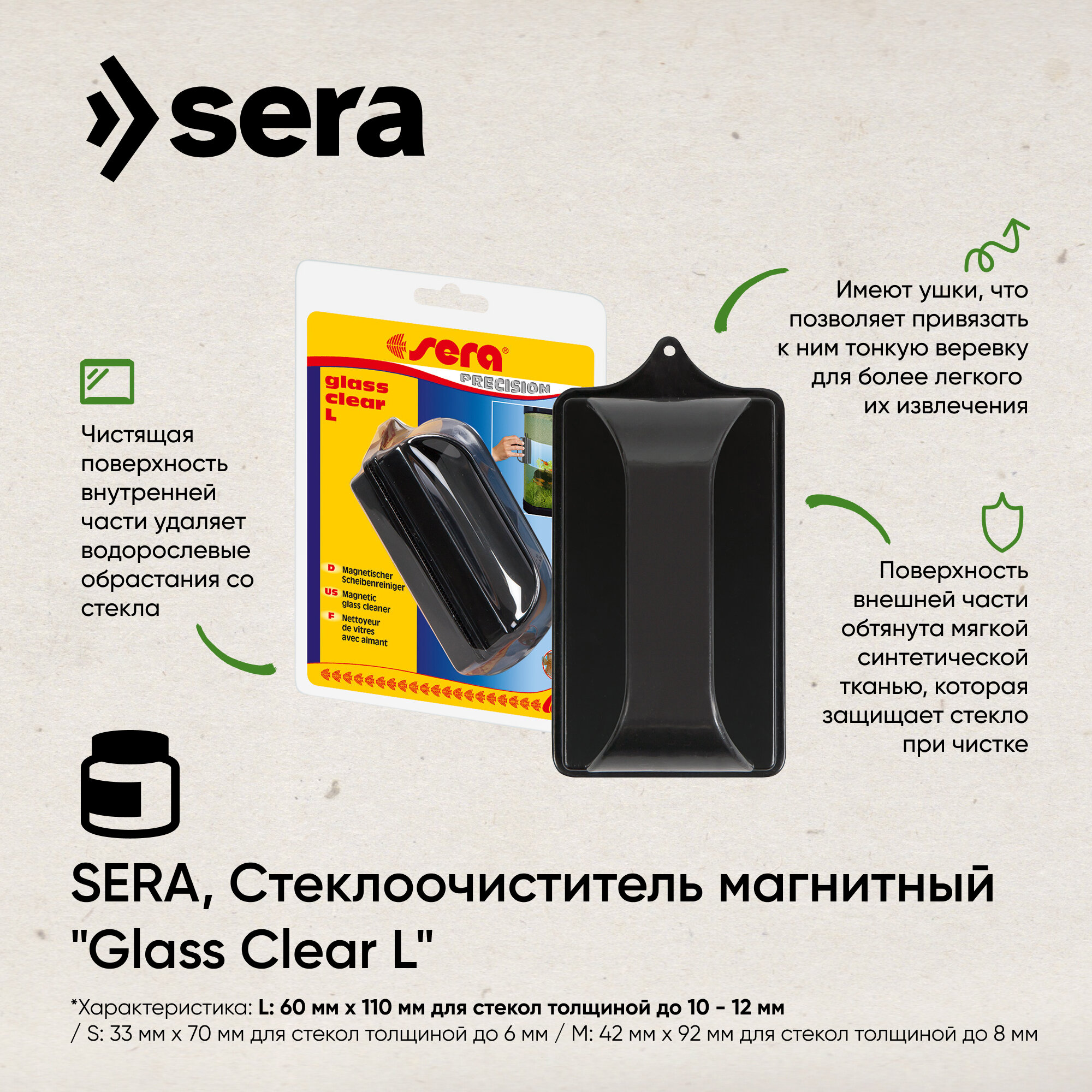 Купить Стеклоочиститель SERA GLAS CLEAR L, магнитный, для аквариума, толщина стекла до 10мм