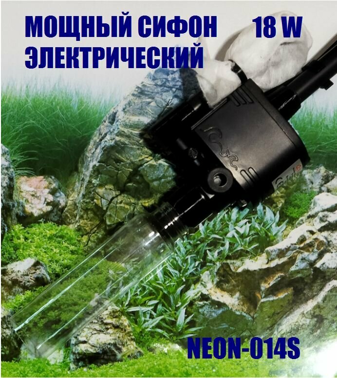 Мощный грунтоочиститель (18 W) электрический для аквариума NEON-014S, две насадки. интересное: