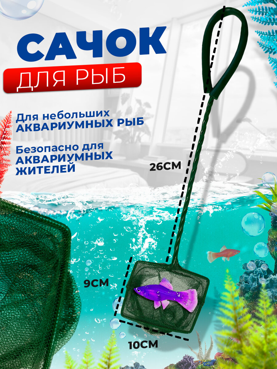Сачок для рыб зелёный 10х9 см, ручка 26 см интересное: