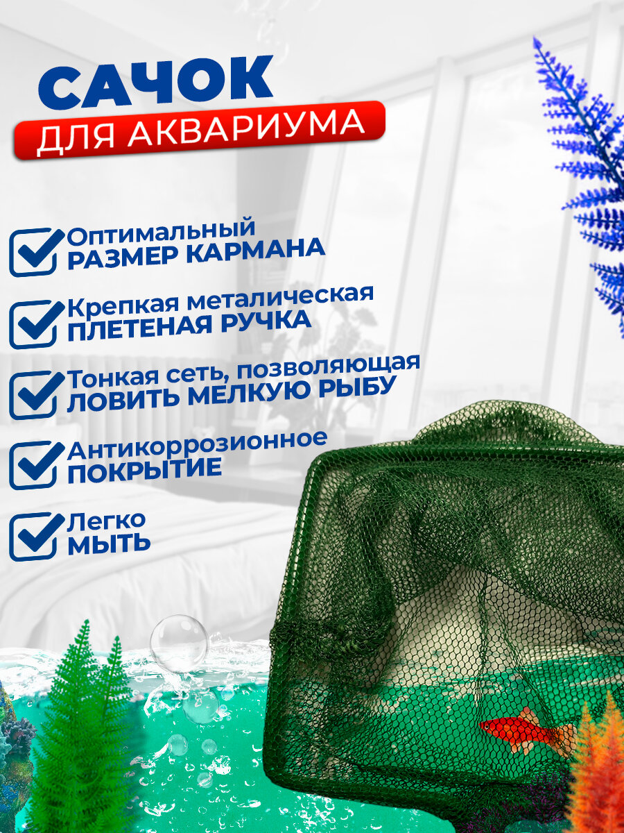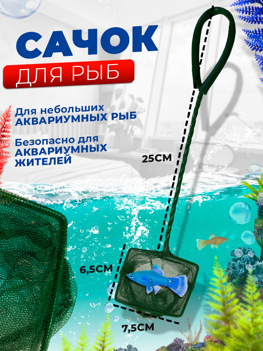 Сачок для рыб зелёный 7.5х6.5 см, ручка 25 см интересное: