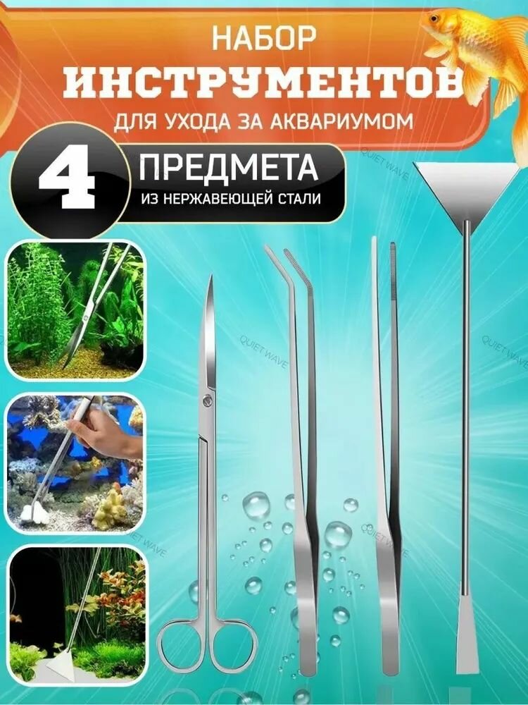 Набор для чистки аквариума из нержавеющей стали 4 инструмента интересное: