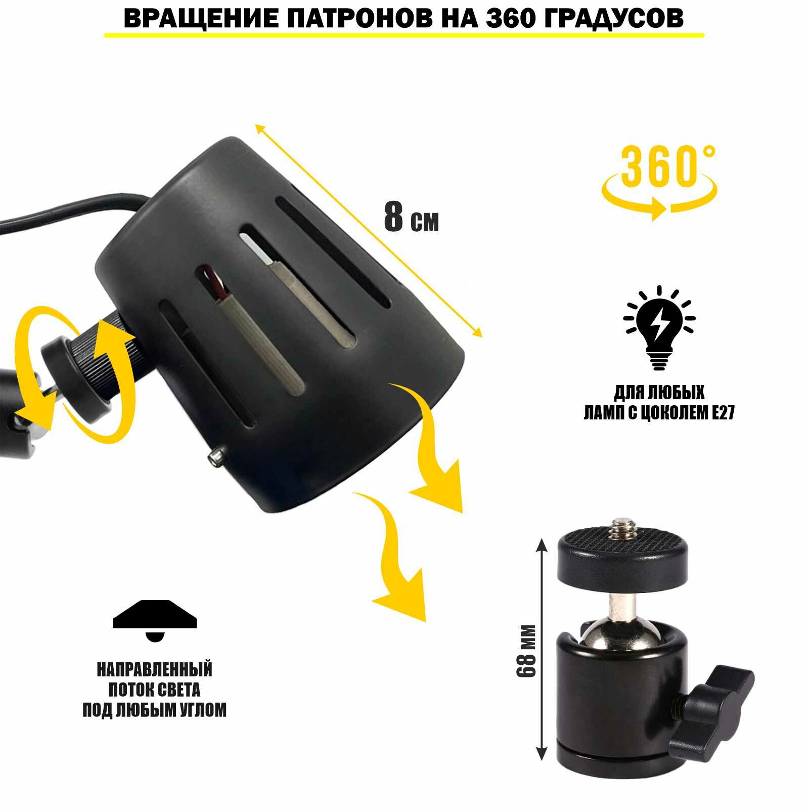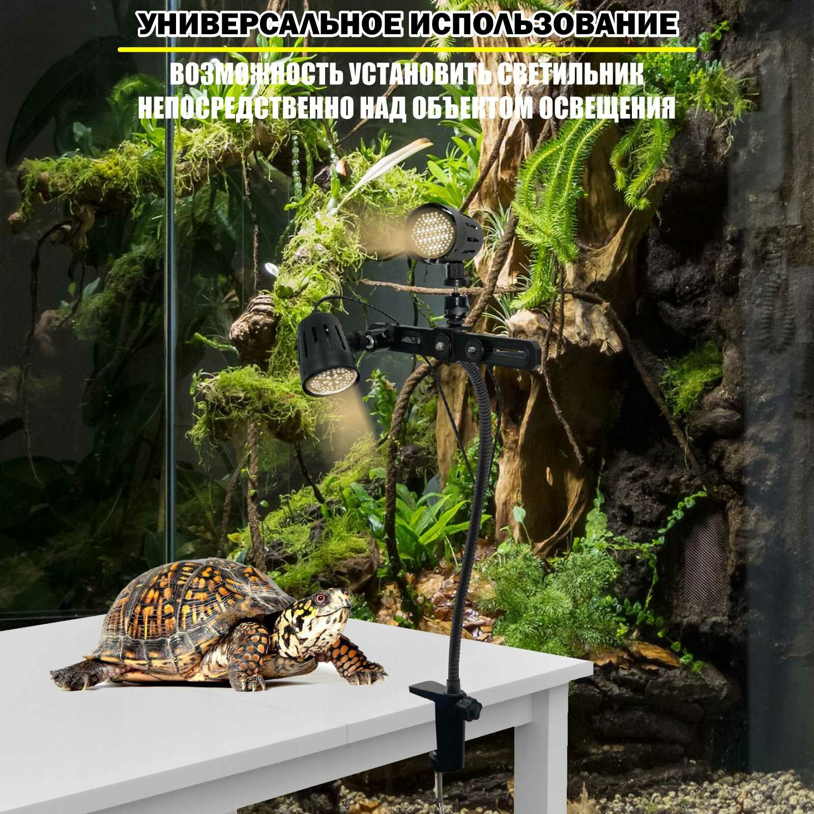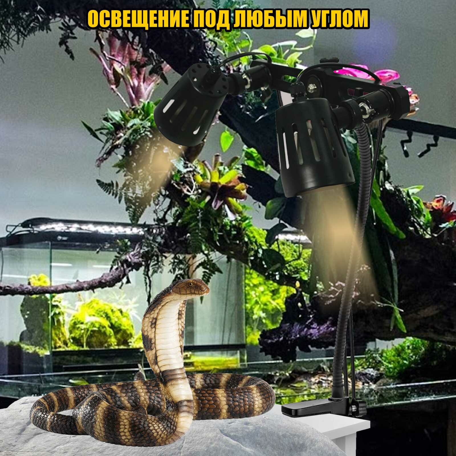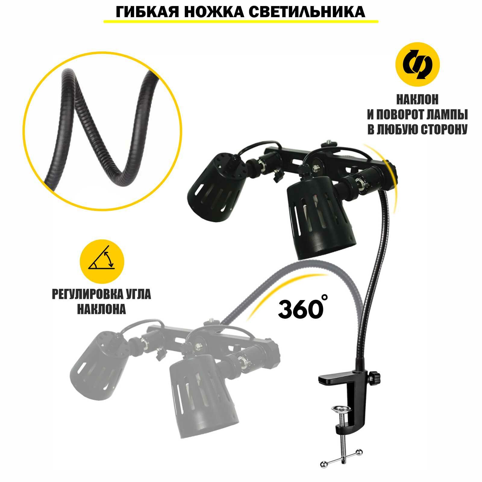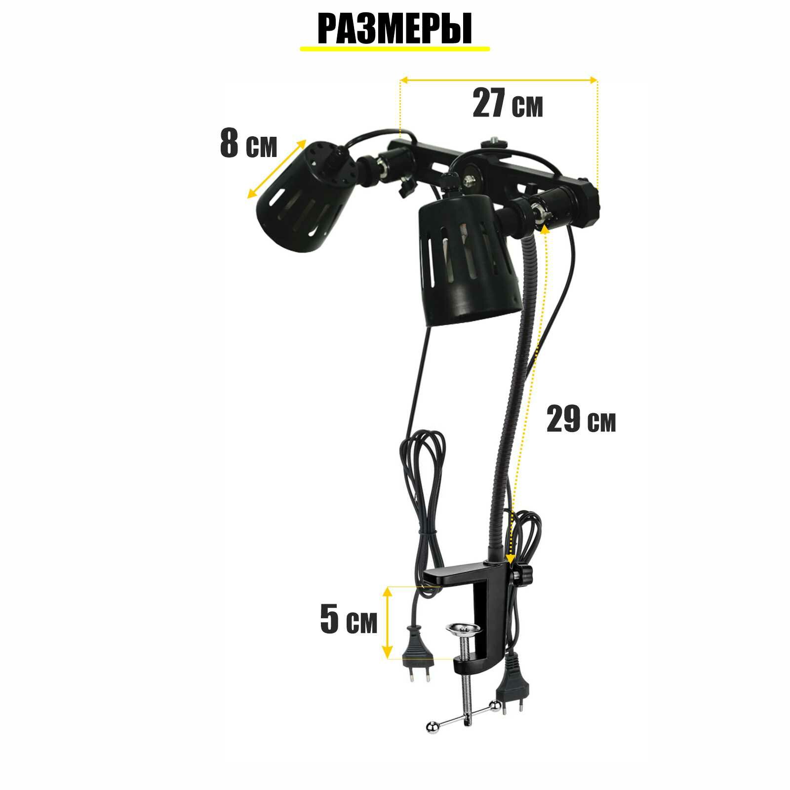 Гибкий черный настольный светильник для террариума G35S-2P с 2 патронами на усиленной струбцине интересное:
