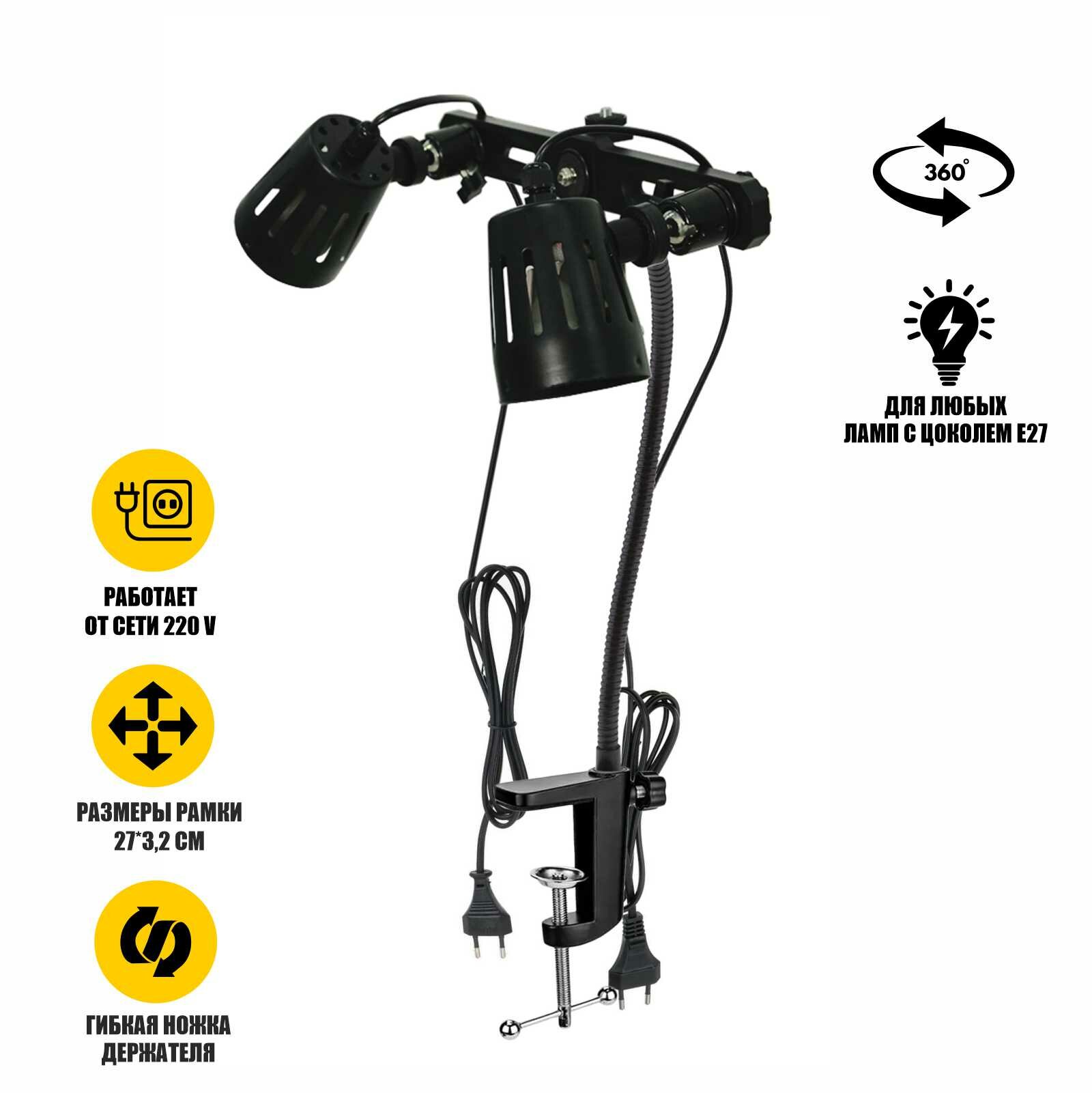 Купить Гибкий черный настольный светильник для террариума G35S-2P с 2 патронами на усиленной струбцине