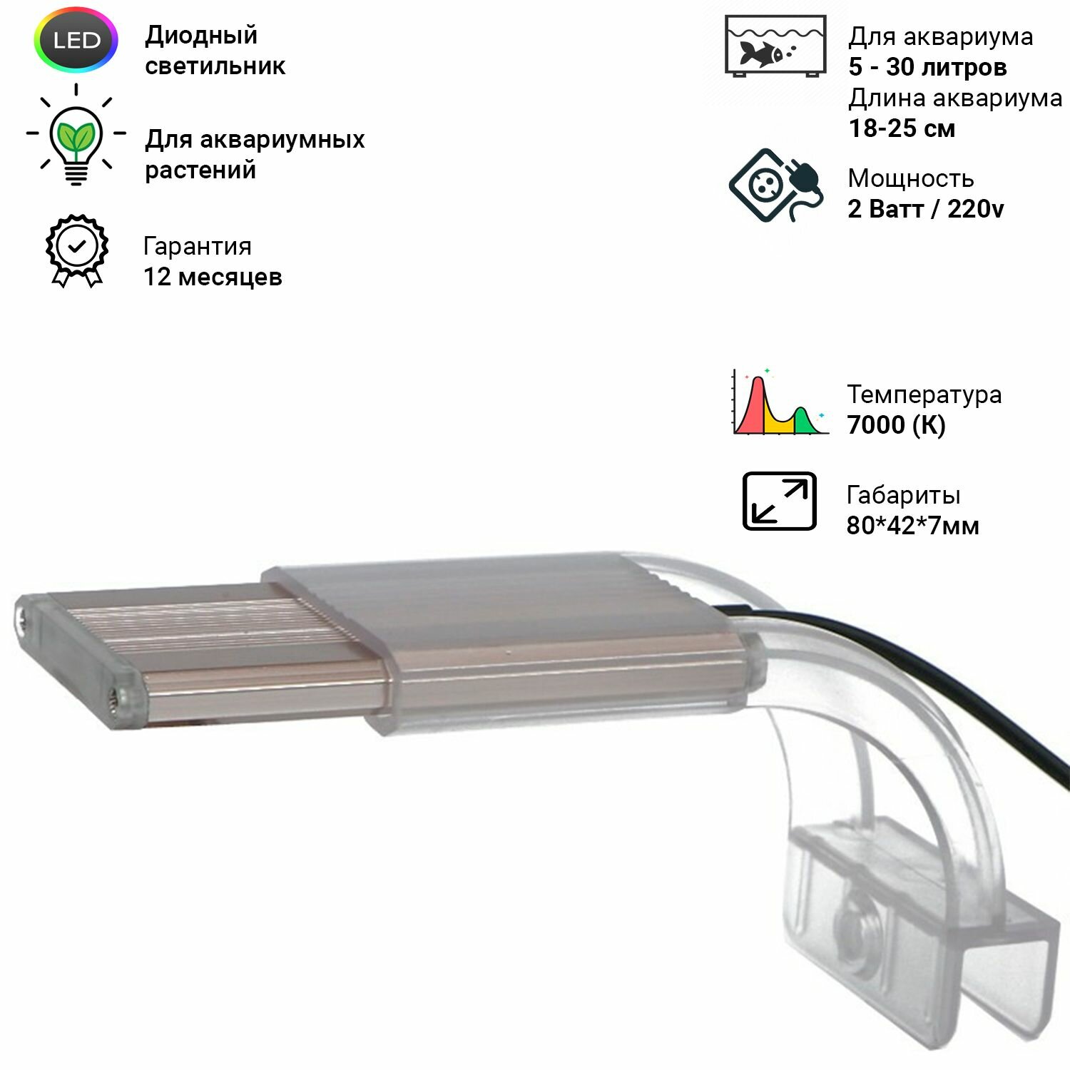Диодный светильник для аквариума и растений Sunsun ADP-080J 180 мм. (для акв. длиной 18-25 см. 1,5 Вт) интересное: