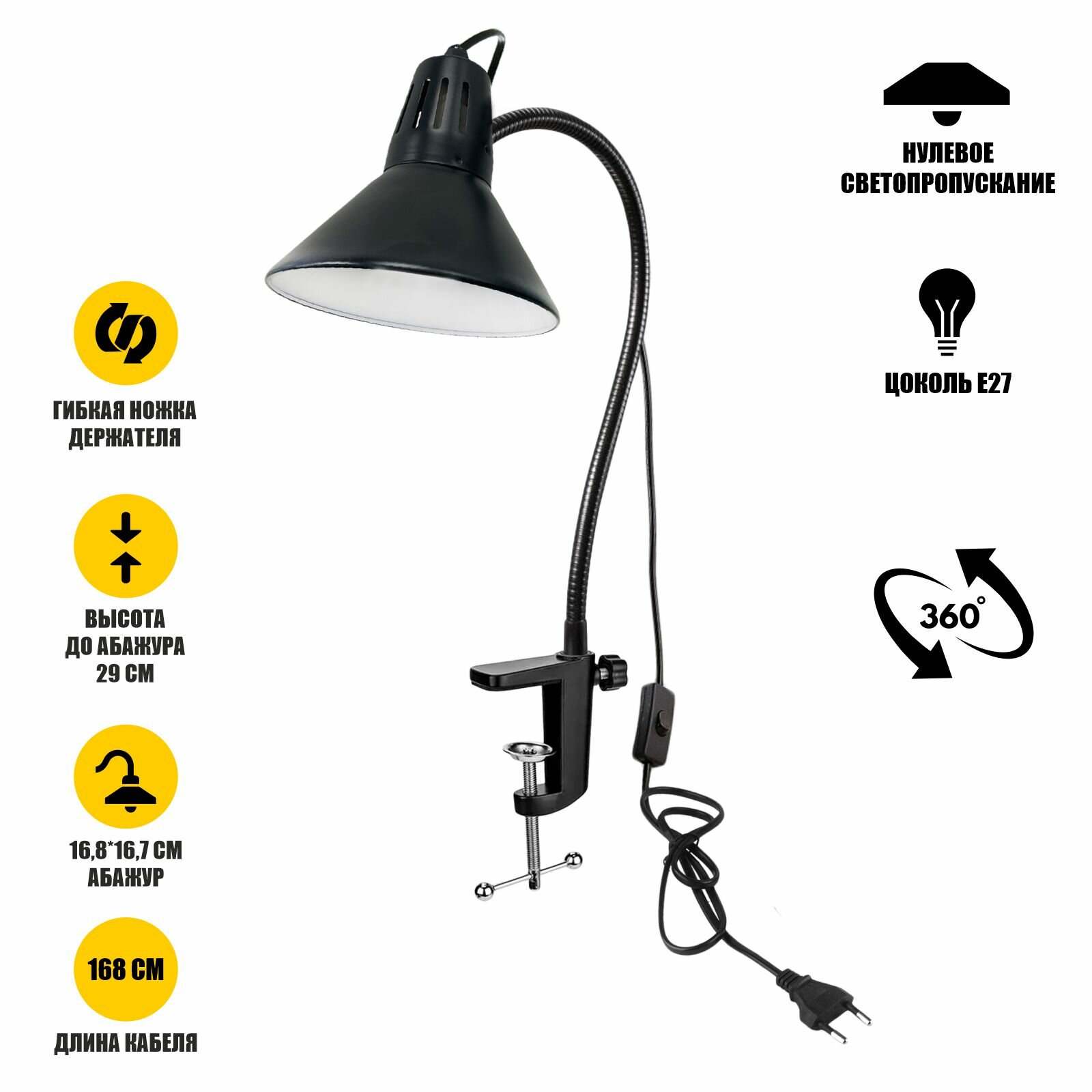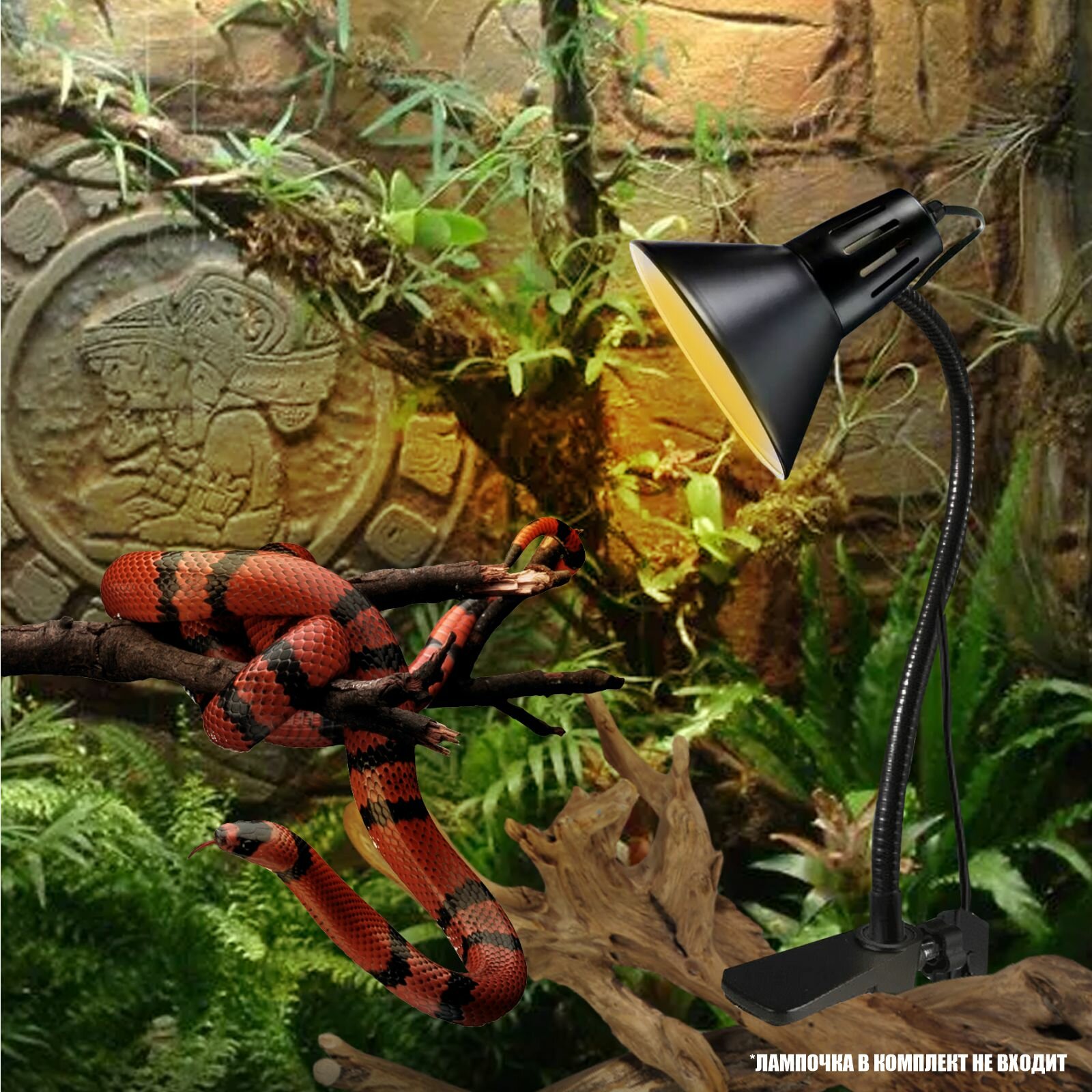 Светильник AL-B-G35S для греющей лампы для рептилий, террариума на гибкой ножке, черный интересное: