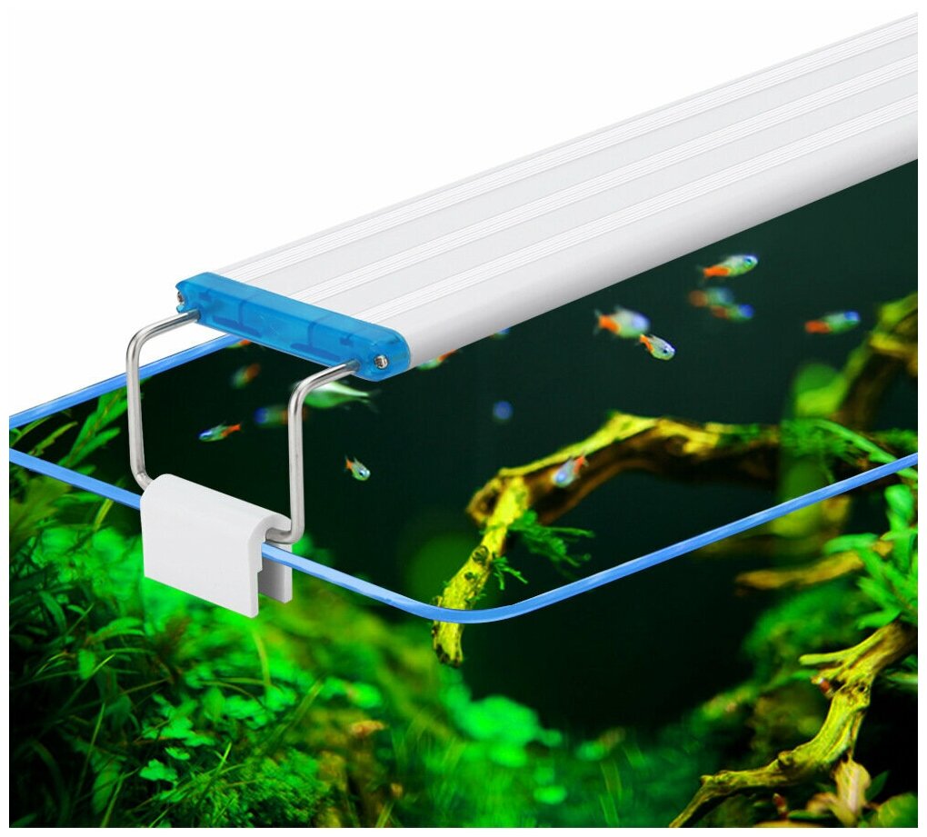 Ультратонкий аквариумный лед светильник белый /синий свет с регулируемыми полозьями 28-40см интересное: