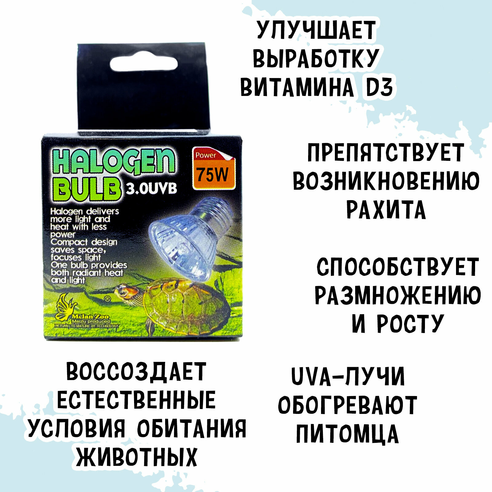MCLANZOO Лампа УФ галогенная мини "UVA+UVB 3.0", 75Вт, Е27, HR16 интересное: