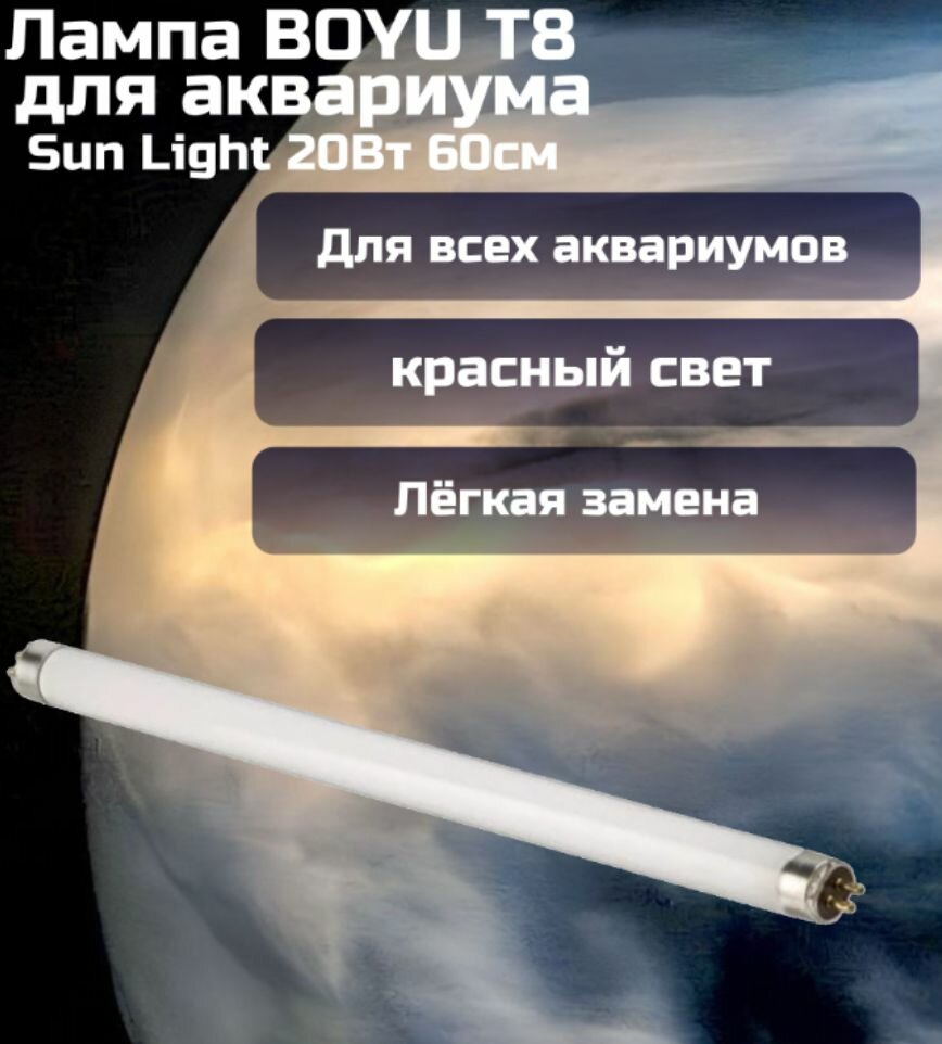 Лампа BOYU T8 для аквариума Sun Light 20Вт 60см (розовая) интересное: