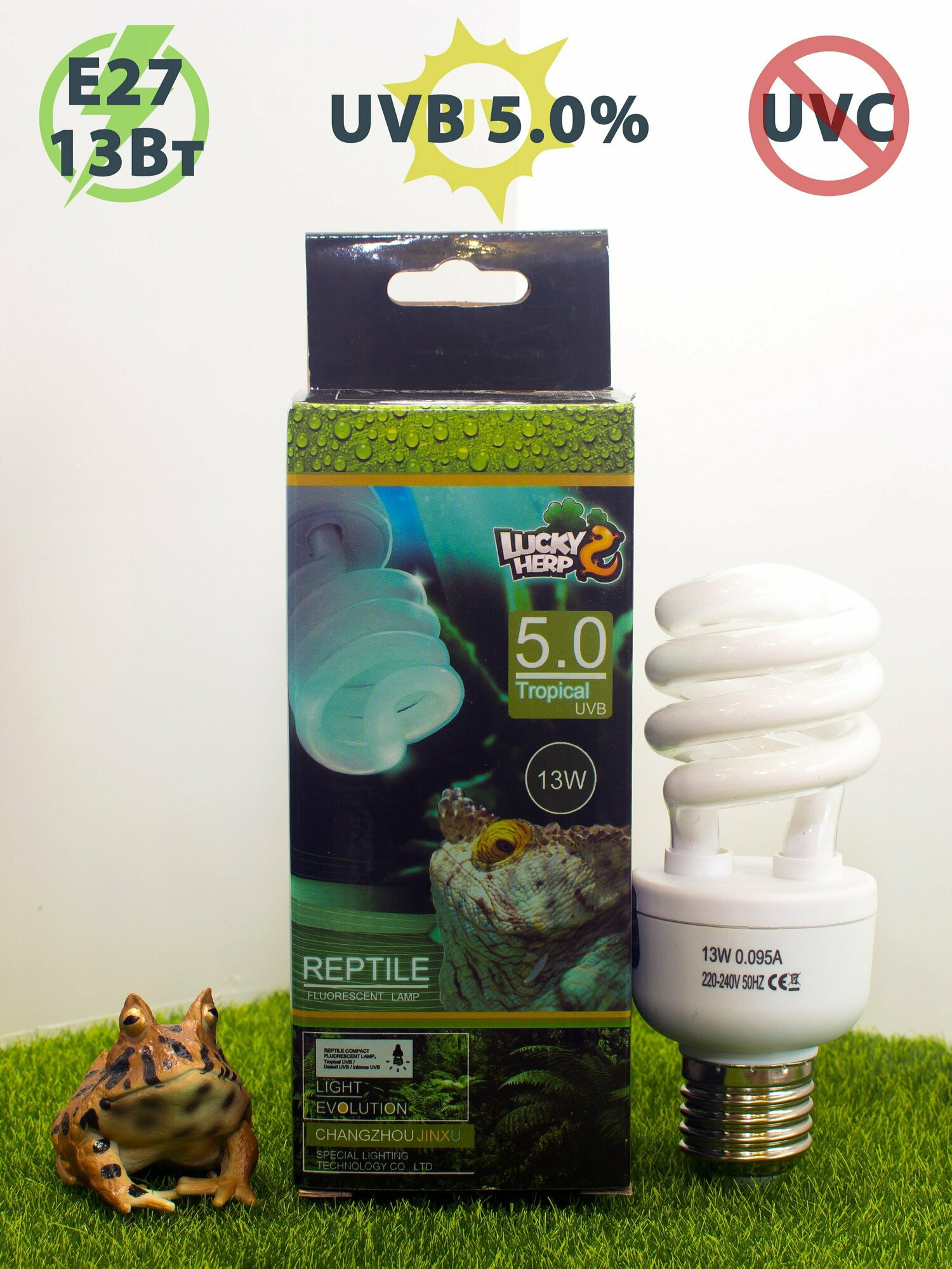 Купить Ультрафиолетовая лампа UVB 5.0% - 13W для рептилий LuckyHerp. Цоколь Е27