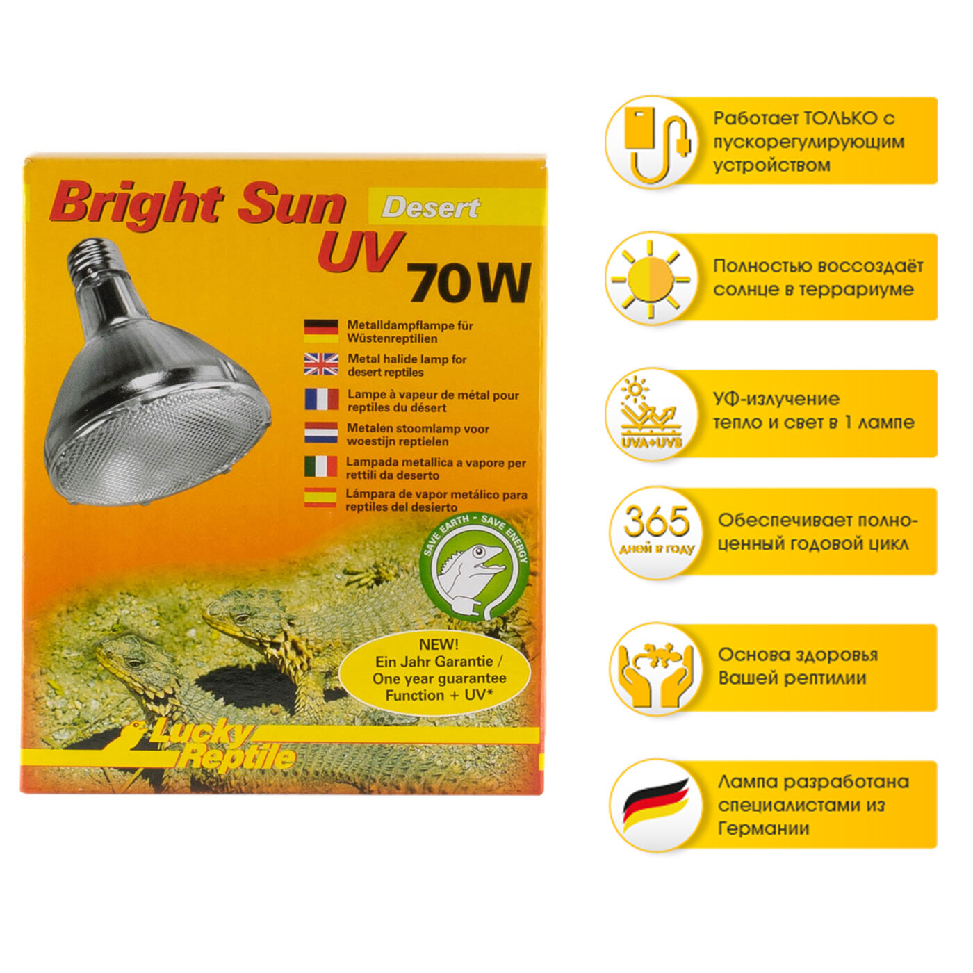 Лампа УФ ультрафиолетовая для пустынных рептилий LUCKY REPTILE "Bright Sun Desert 70Вт" (Германия) интересное: