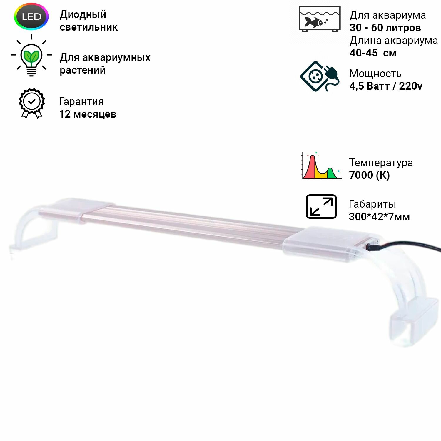 Диодный светильник для аквариума и растений Sunsun ADP-300J 300 мм. (для акв. длиной 40-45 см. 4.5 Вт) интересное: