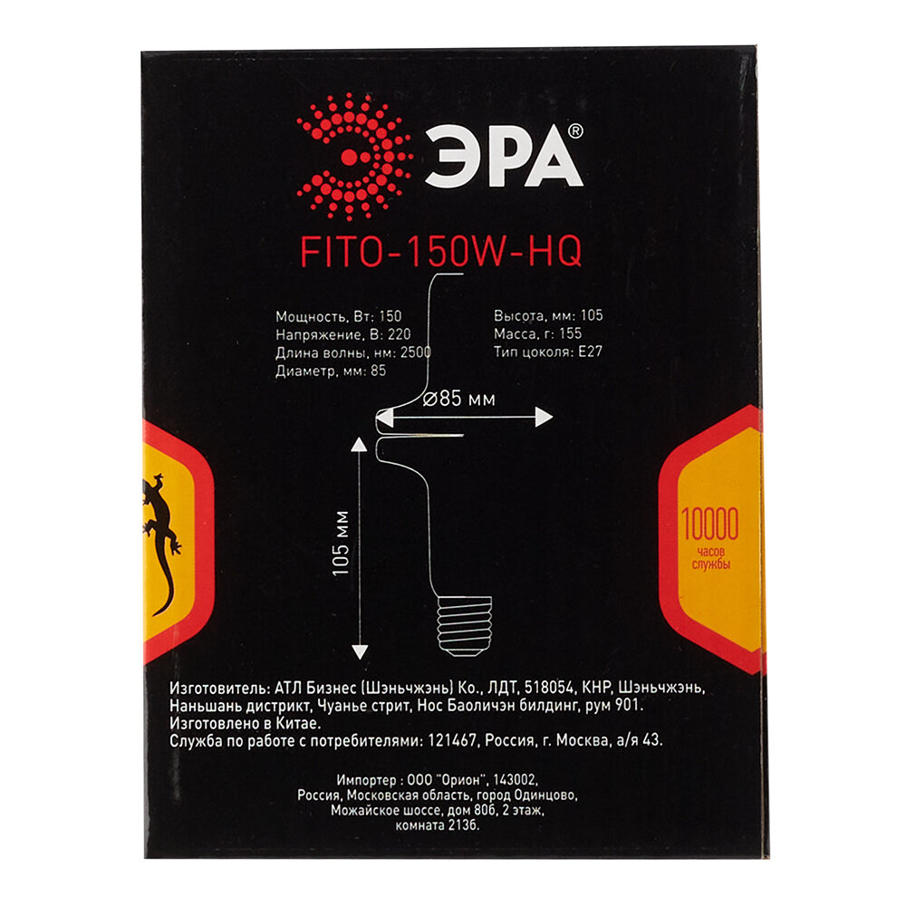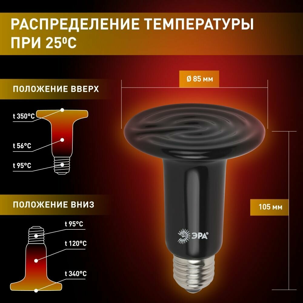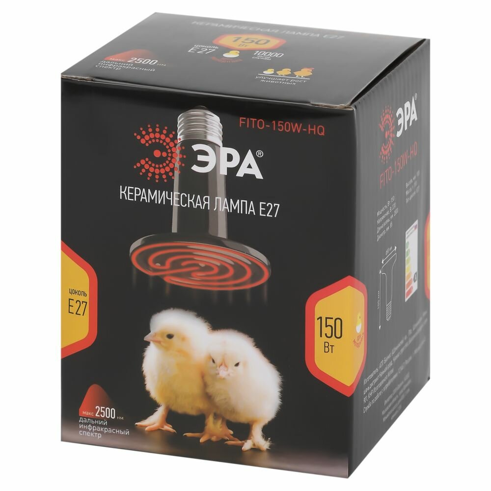 Инфракрасная лампа ЭРА FITO-150W-НQ 150 Вт Е27 для брудера, рептилий 150Вт интересное: