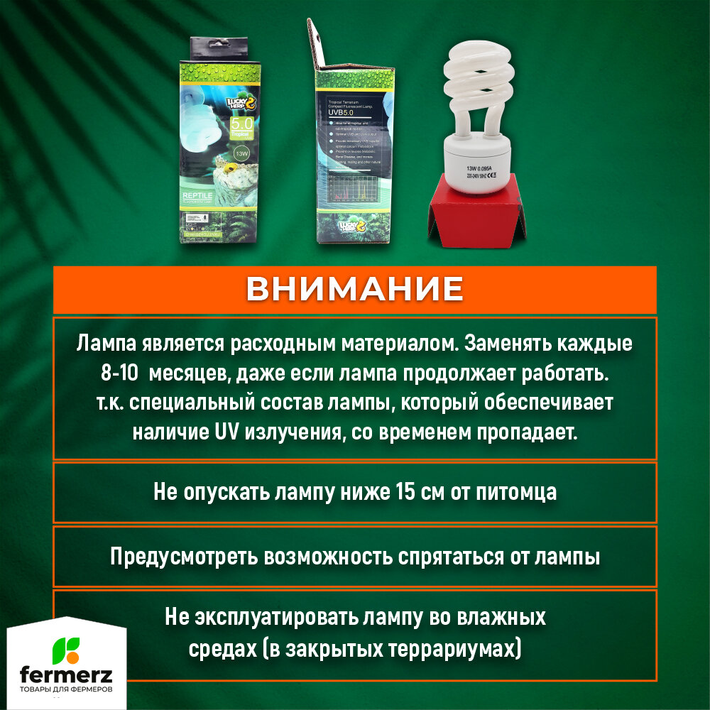 Лампа для рептилий Lucky Herp UVB 5.0 13Вт, E27 интересное: