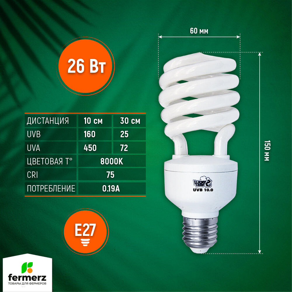 Лампа для рептилий Lucky Herp UVB 10.0 26Вт, E27 интересное: