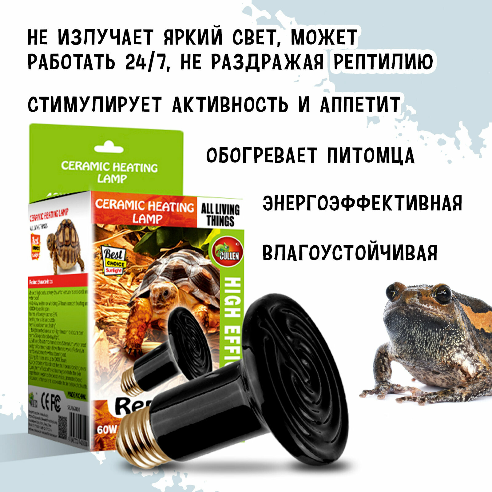 MCLANZOO Керамическая лампа обогрева "Ceramic Heating", чёрная, 60Вт, Е27, 8х8х11.5см интересное: