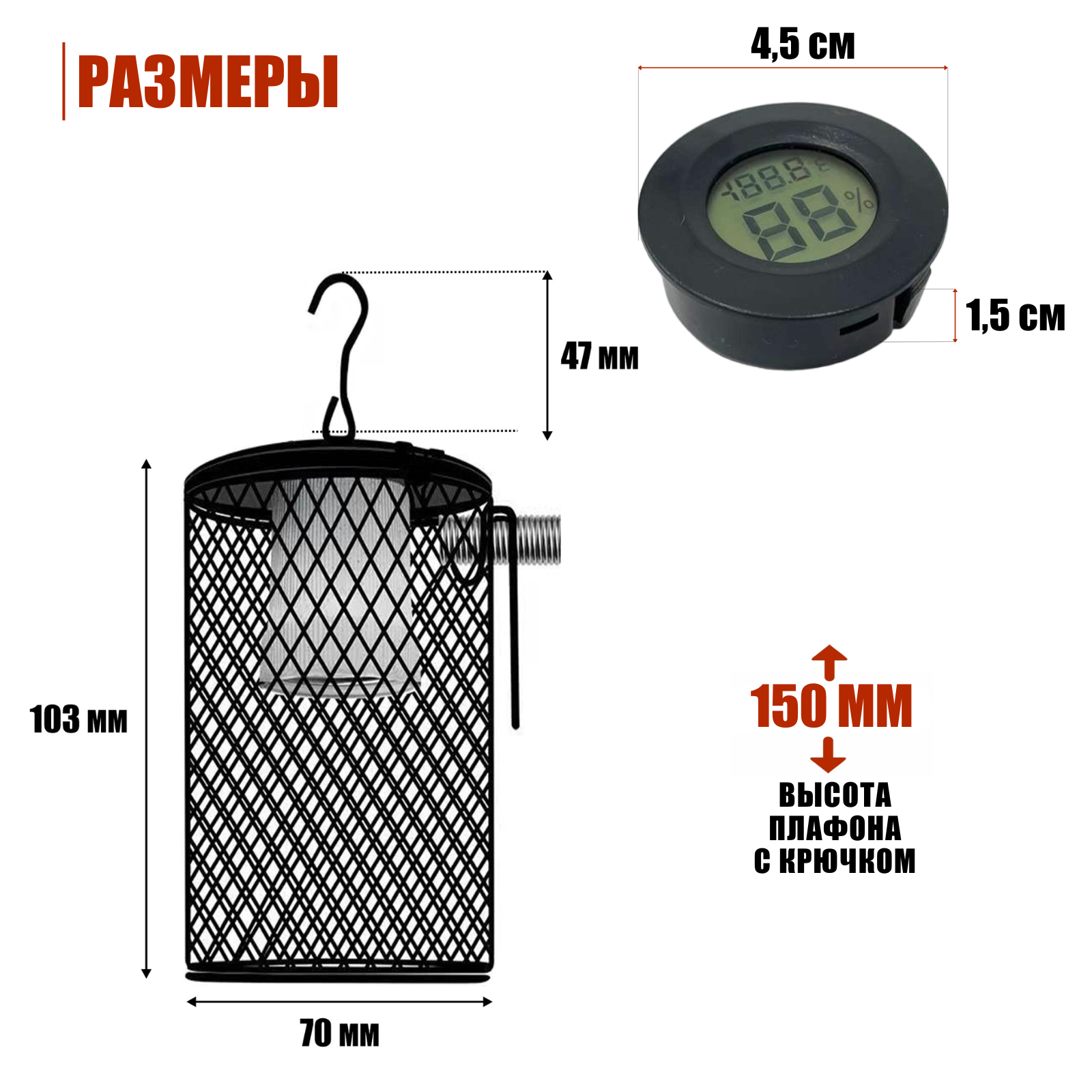 Купить Светильник подвесной с защитной решеткой и термометр гигрометр для террариума