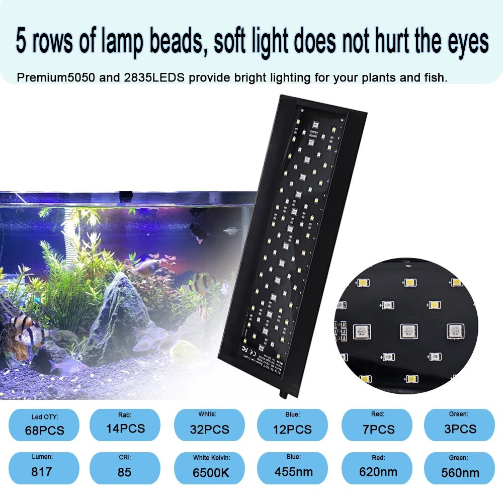 Купить Leewince светодиодный светильник для аквариума 14 Вт, вилка ЕС, Черный