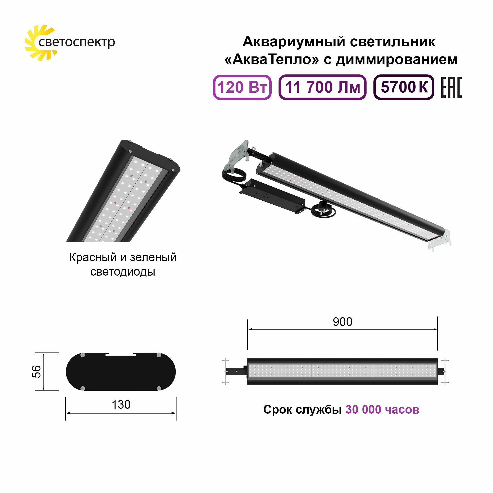 Светильник для аквариума АкваТепло 900 мм, 120Вт, 5700К с диммером интересное: