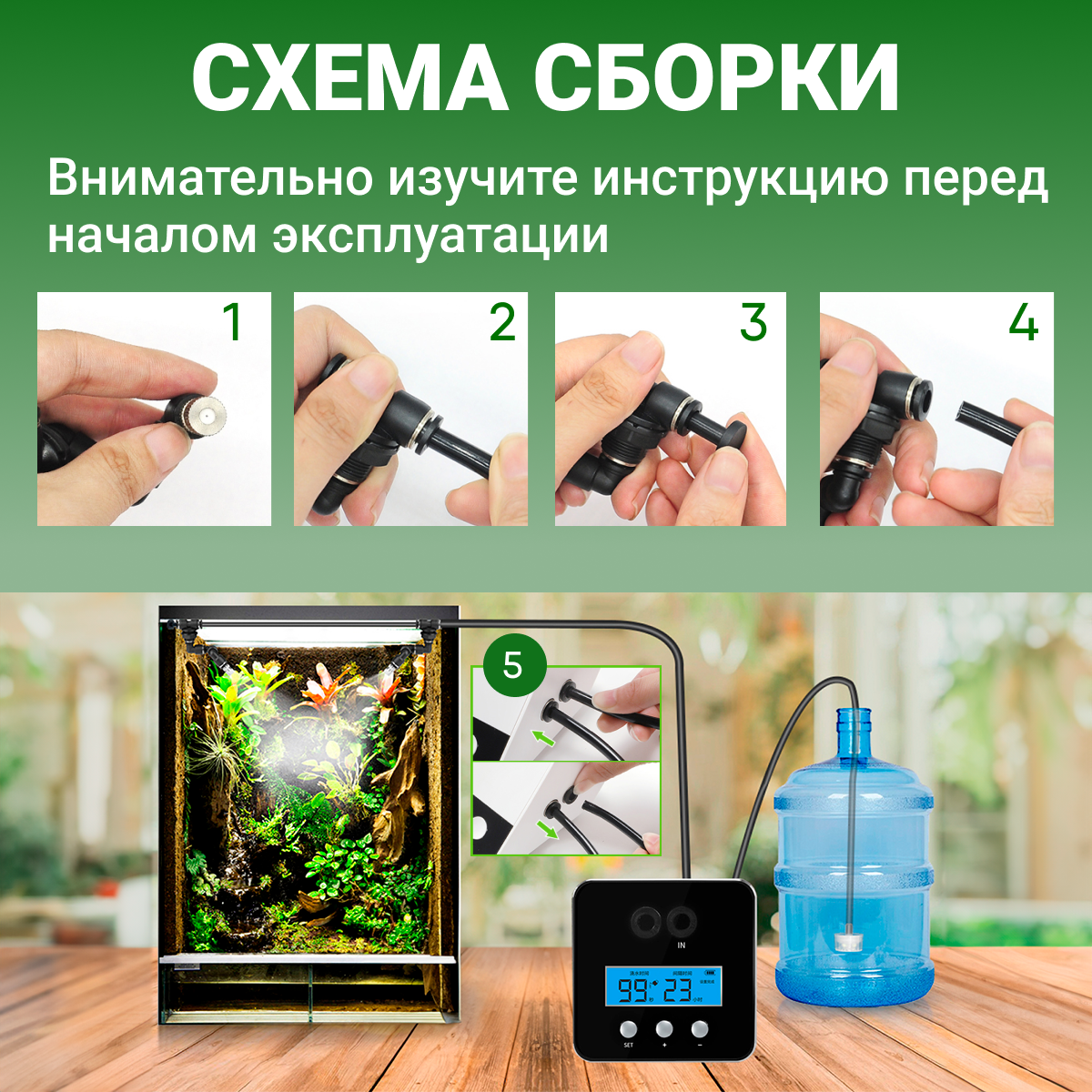 Аксессуар для террариума "Система орошения", максимальная производительность 56 л/час, черный. интересное:
