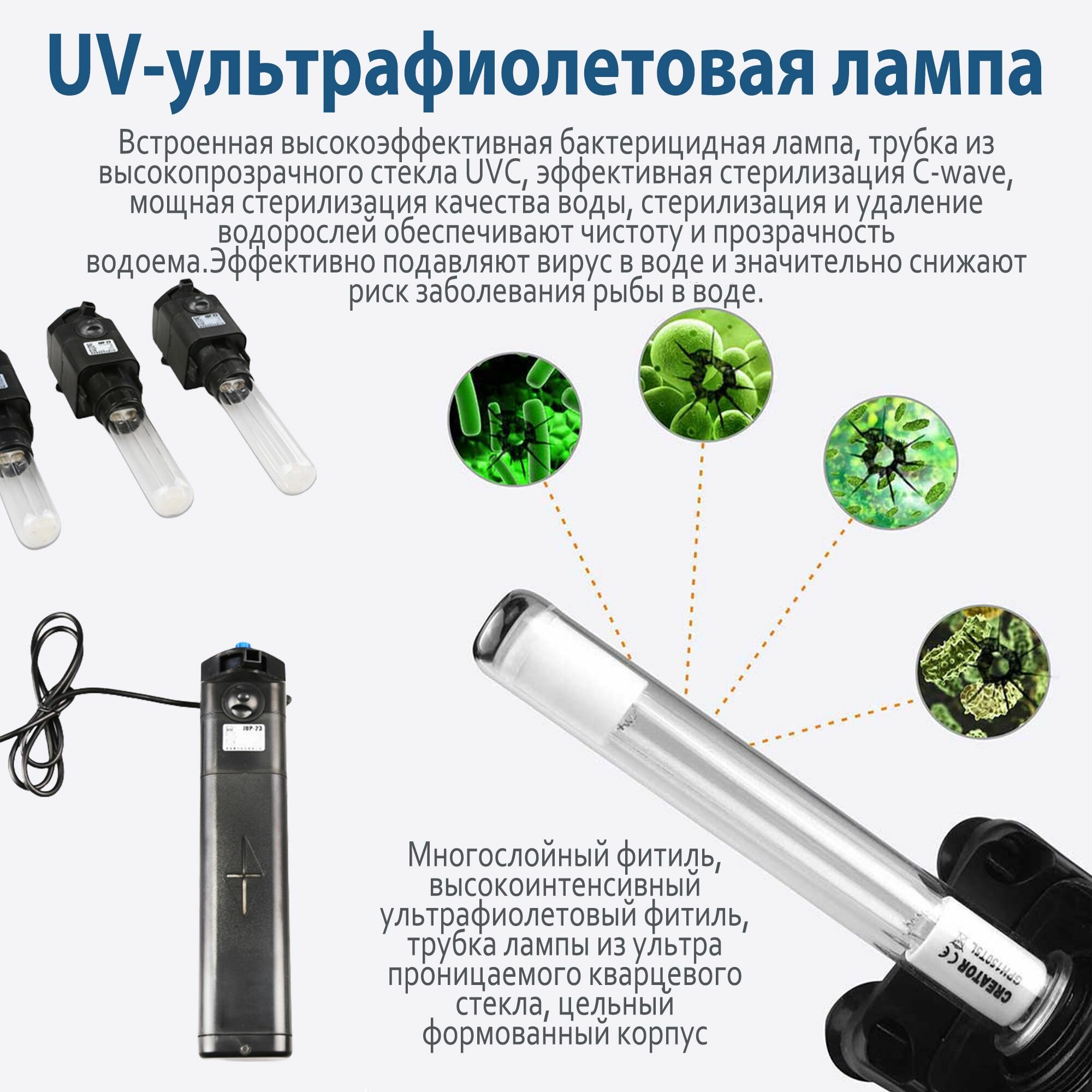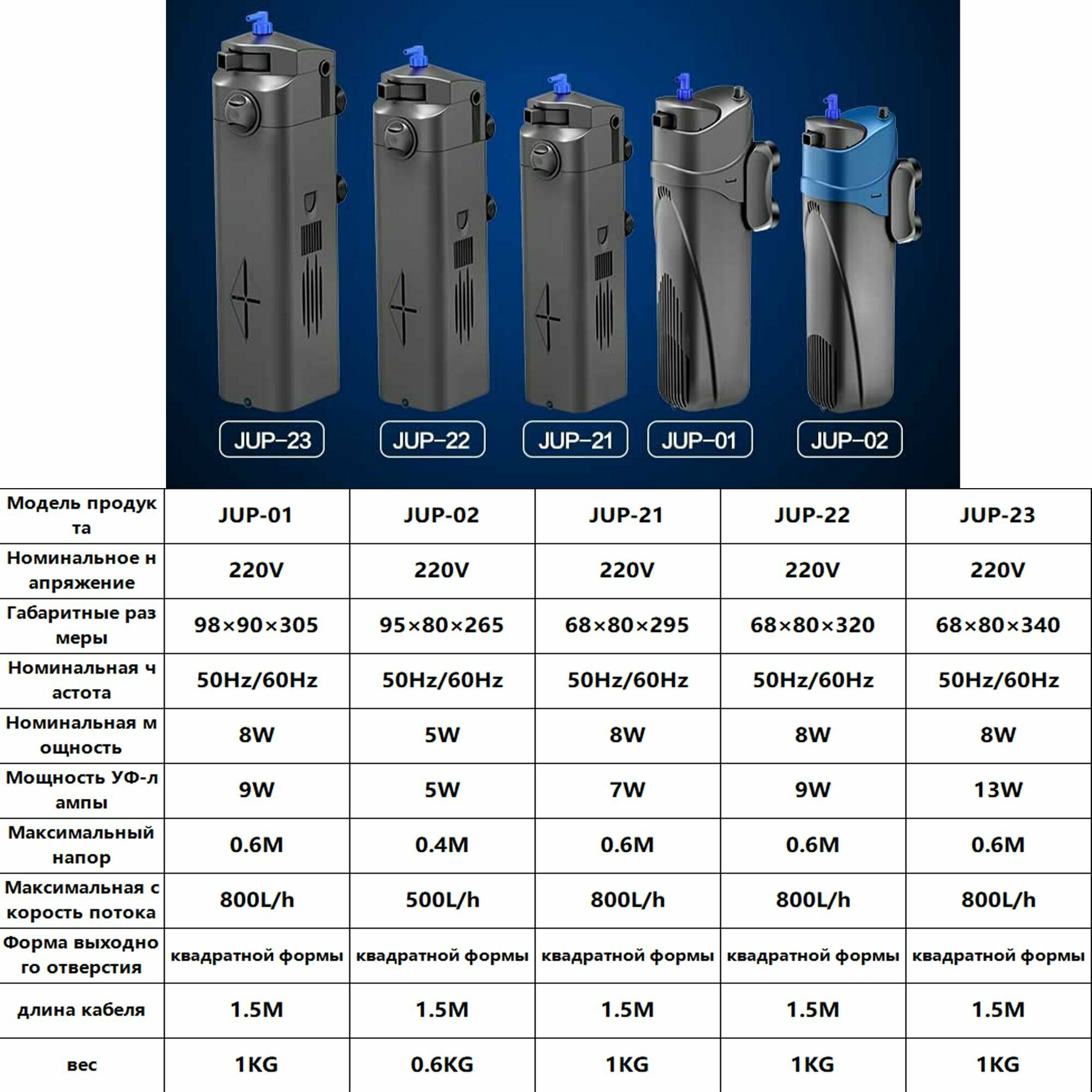 -встроенный фильтр с бактерицидной лампой мощностью JUP-22 9 Вт мощность насоса 8 Вт 800Л/ч SUNSUN интересное: