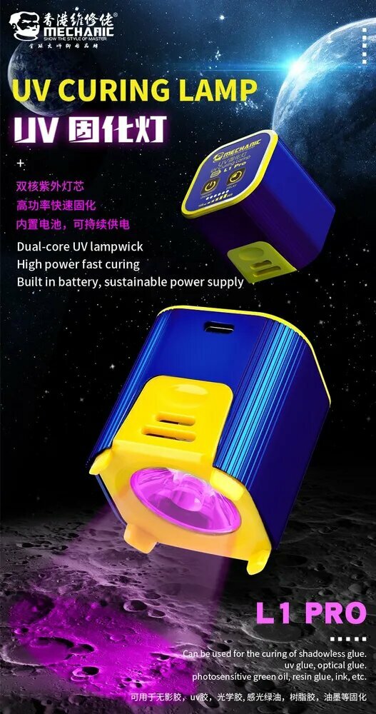 Фонарь ультрафиолетовый Mechanic L1 Pro для быстрого отверждения клея, маски на платах. Таймер 30/60 сек (УФ лампа для ремонта) интересное: