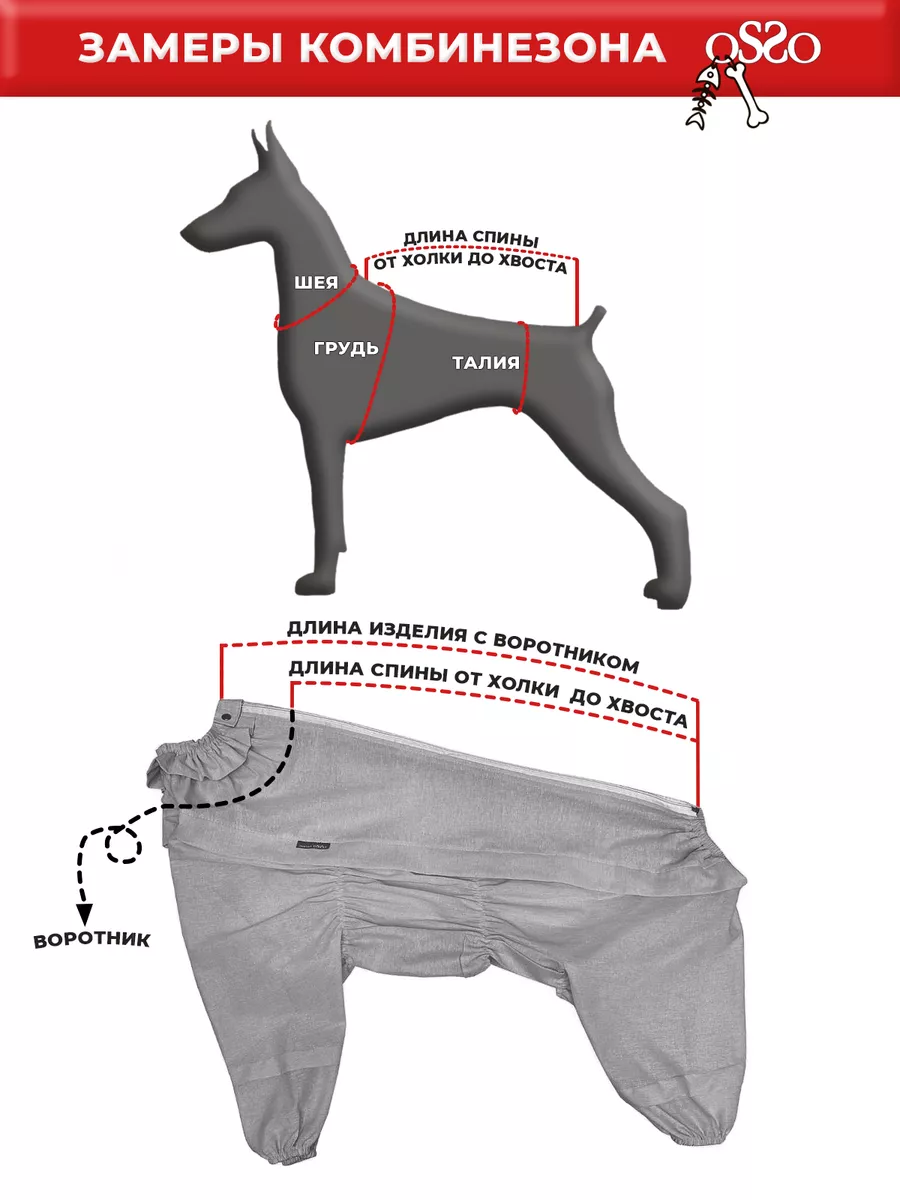 Комбинезон OSSO "Антиклещ"для собак, с ловушками от клещей р. 25 (кобель) серый, лето/весна