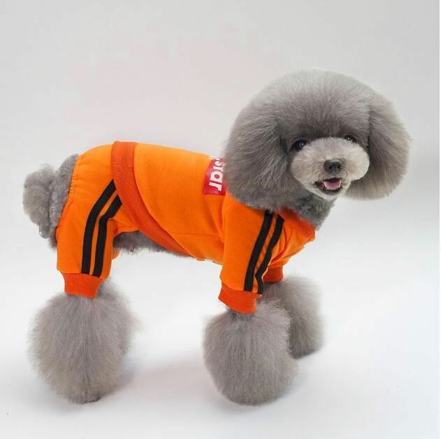 Костюм для собак спортивный. Размер XL. Длина спины 39-44 см. Оранжевый. Комбинезон-пыльник интересное: