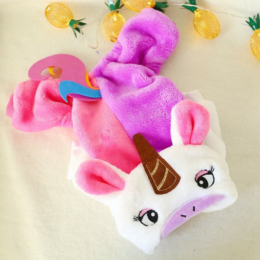 Комбинезон BoomBoomShop, "Единорог" XS, плюшевый, на кнопках, для кошек и собак, демисезонный.