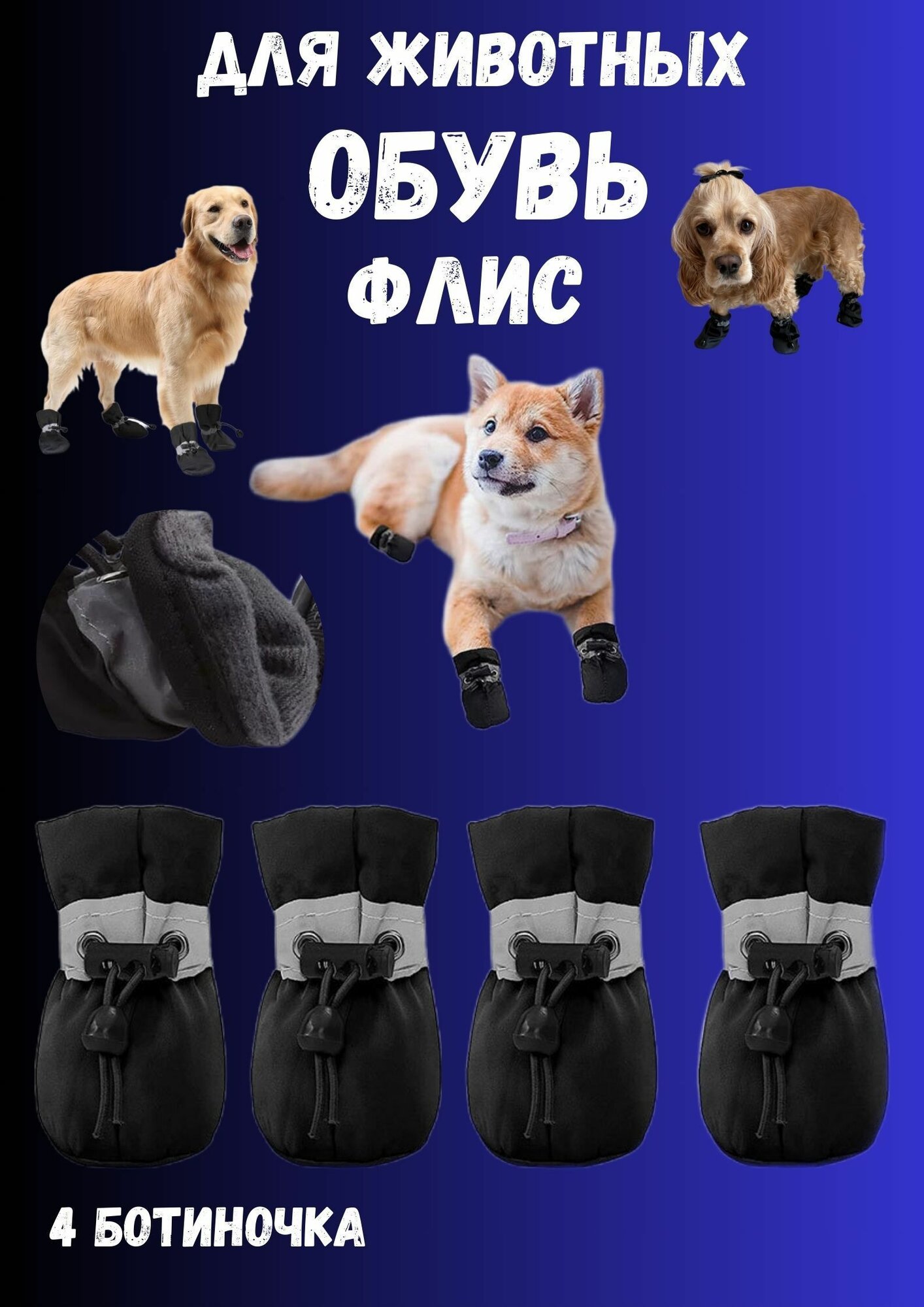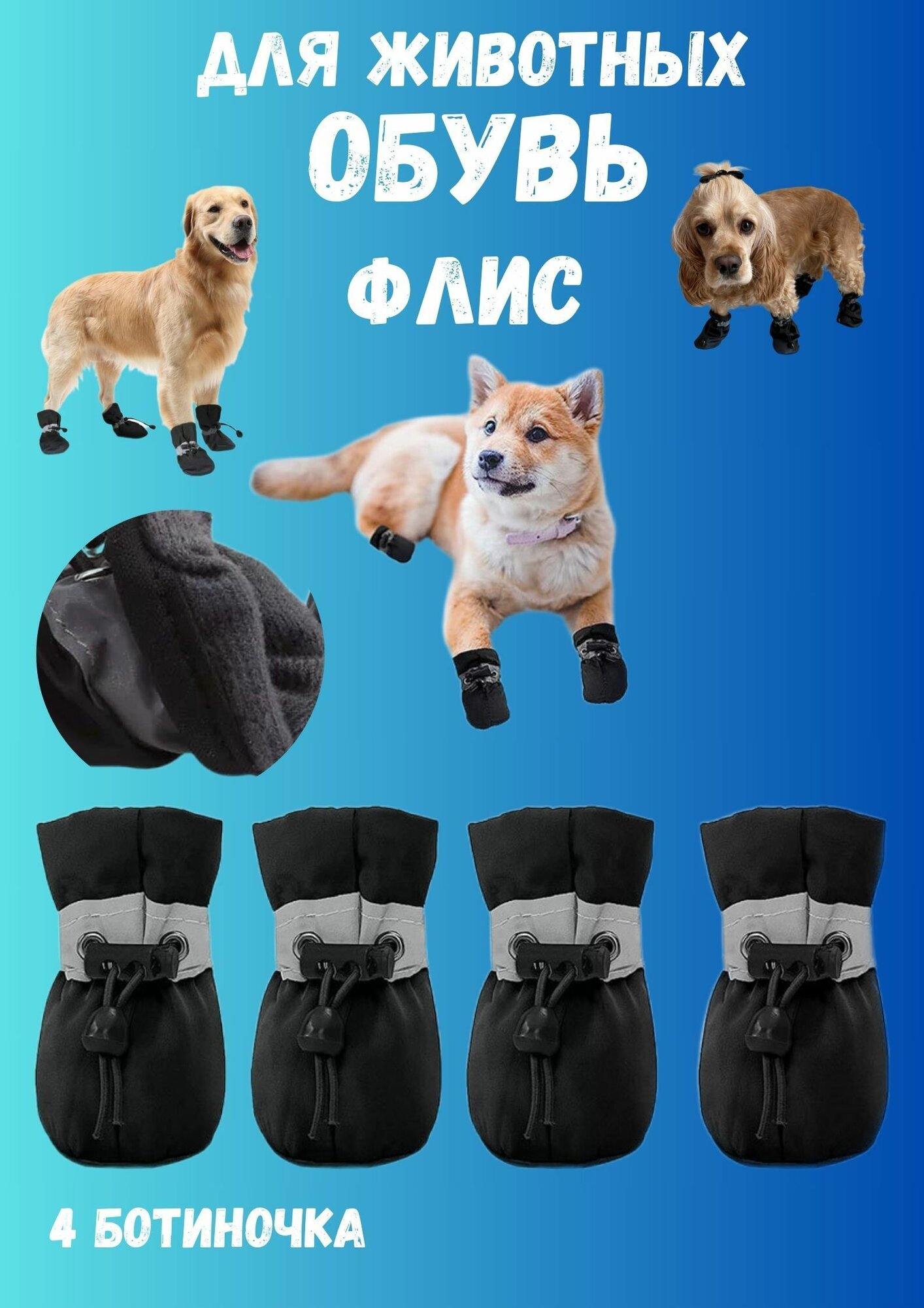 Ботинки теплые для собак и кошек с мехом 4-L