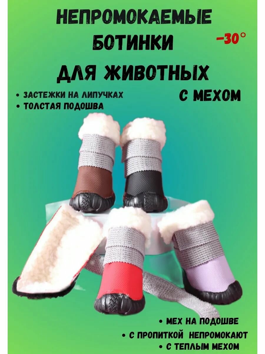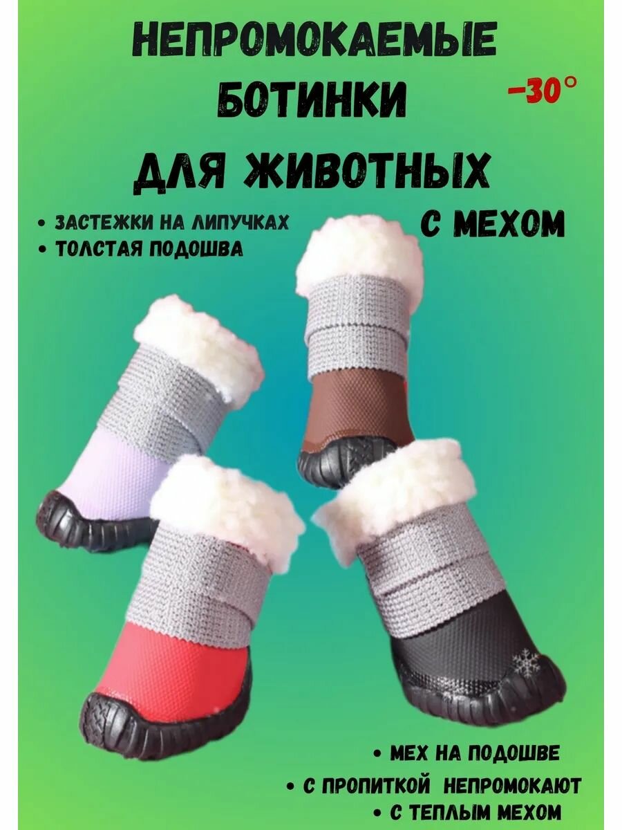 Обувь зимняя для собак мелких и средних пород с мехом 6-2XL