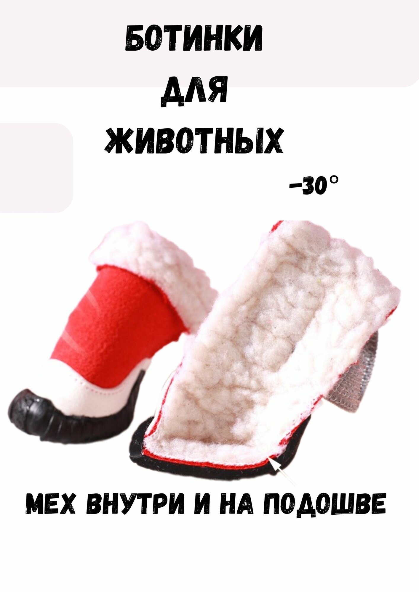Зимние ботинки для собак с мехом на толстой подошве 1-XS