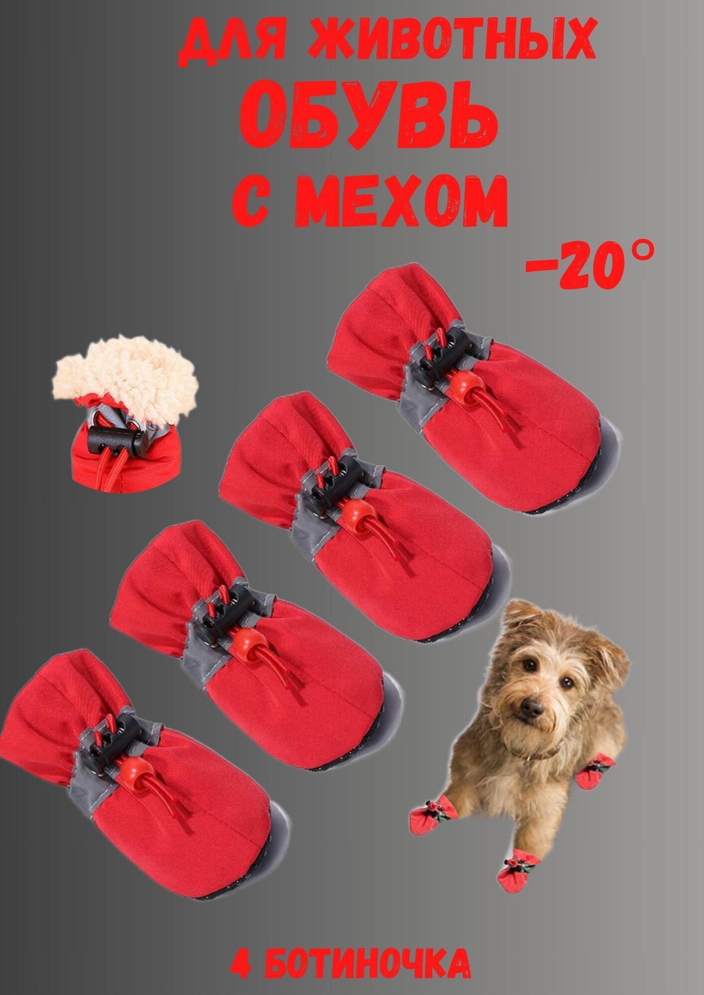 Обувь зимняя для собак мелких и средних пород с мехом 6-2XL