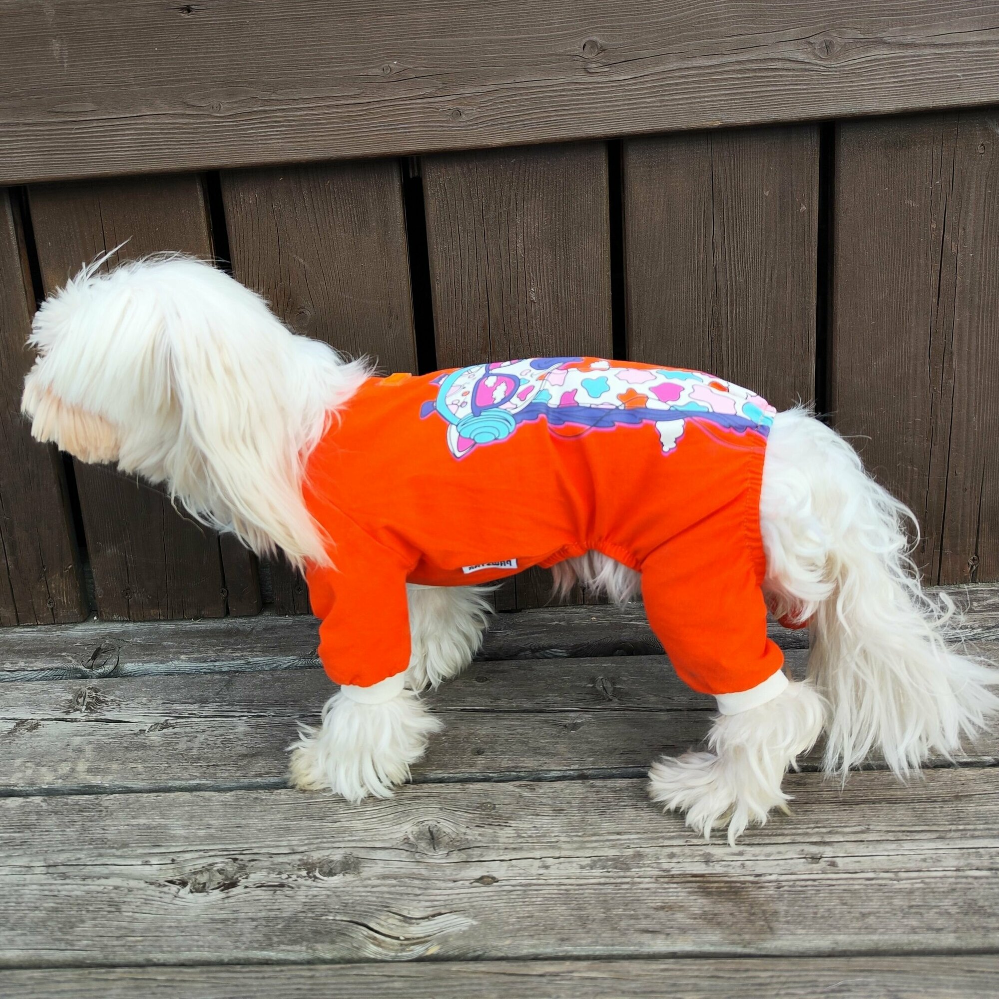 Комбинезон-пижама для собак и кошек PAWSTAR. Размер L. Костюм жираф. Цвет оранжевый. Хлопок 100%. Обхват груди 41-46 см. Одежда мелких пород. интересное: