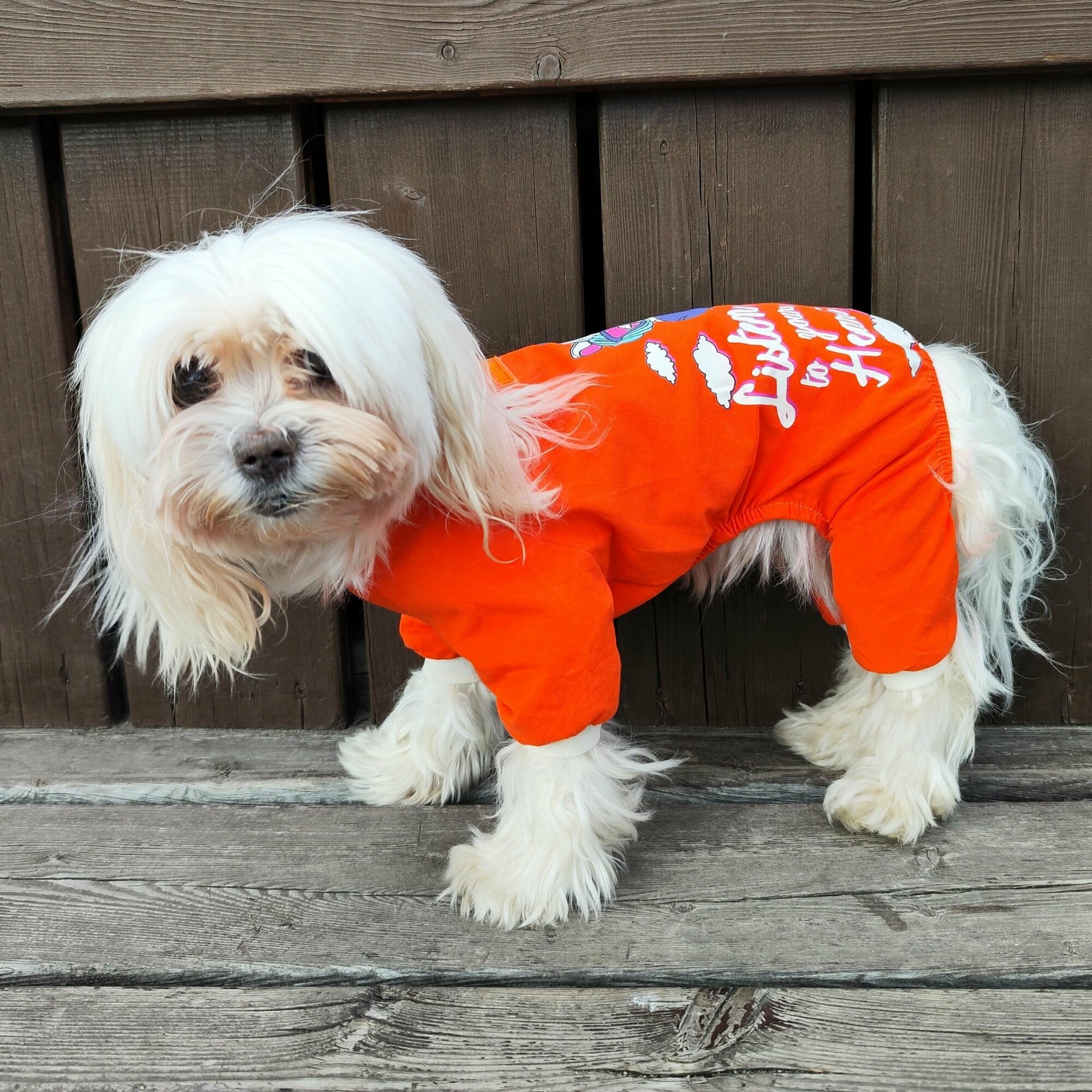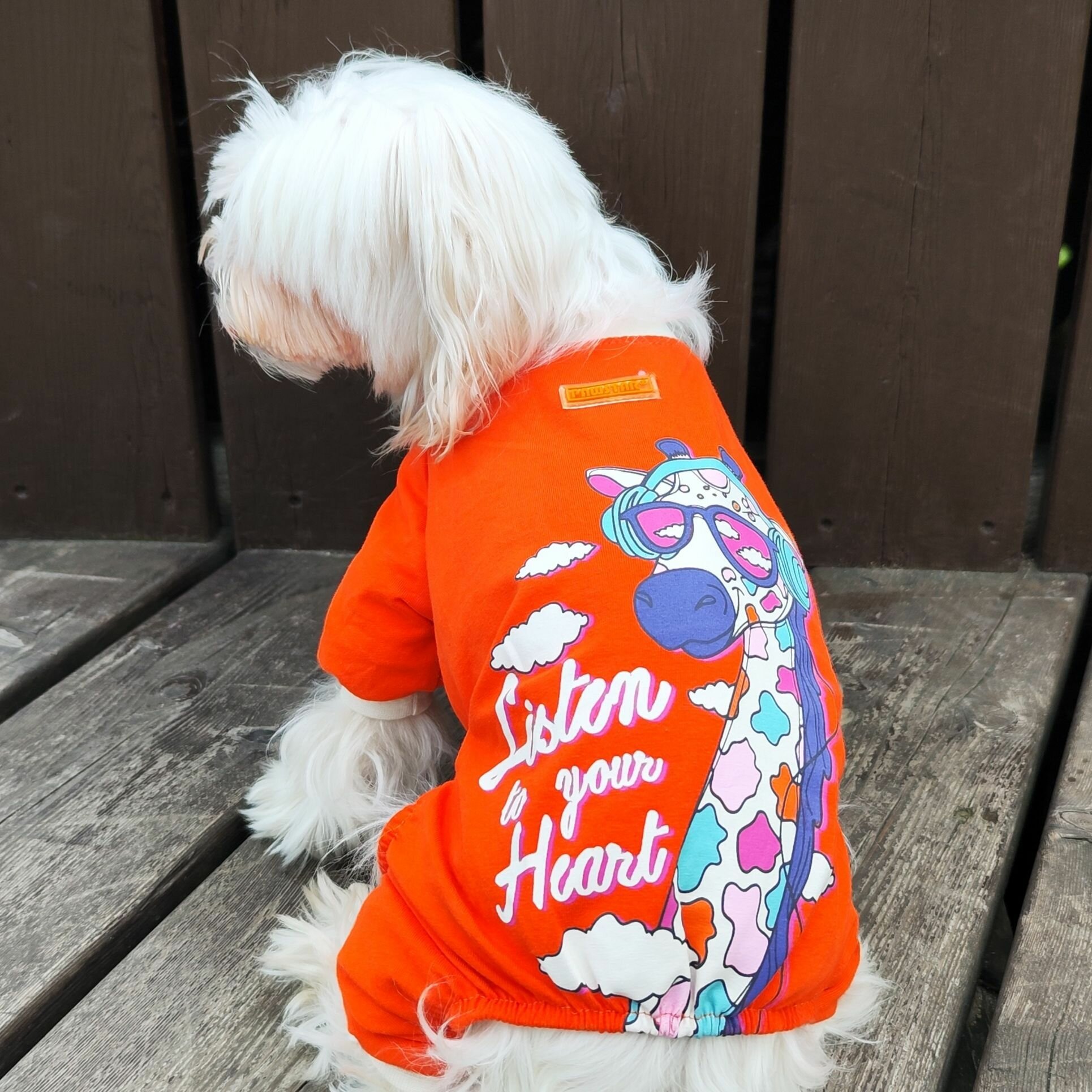 Купить Комбинезон-пижама для собак PAWSTAR. Размер XL. Костюм жираф. Цвет оранжевый. Хлопок 100%. Обхват груди 47-54 см. Одежда мелких и средних пород