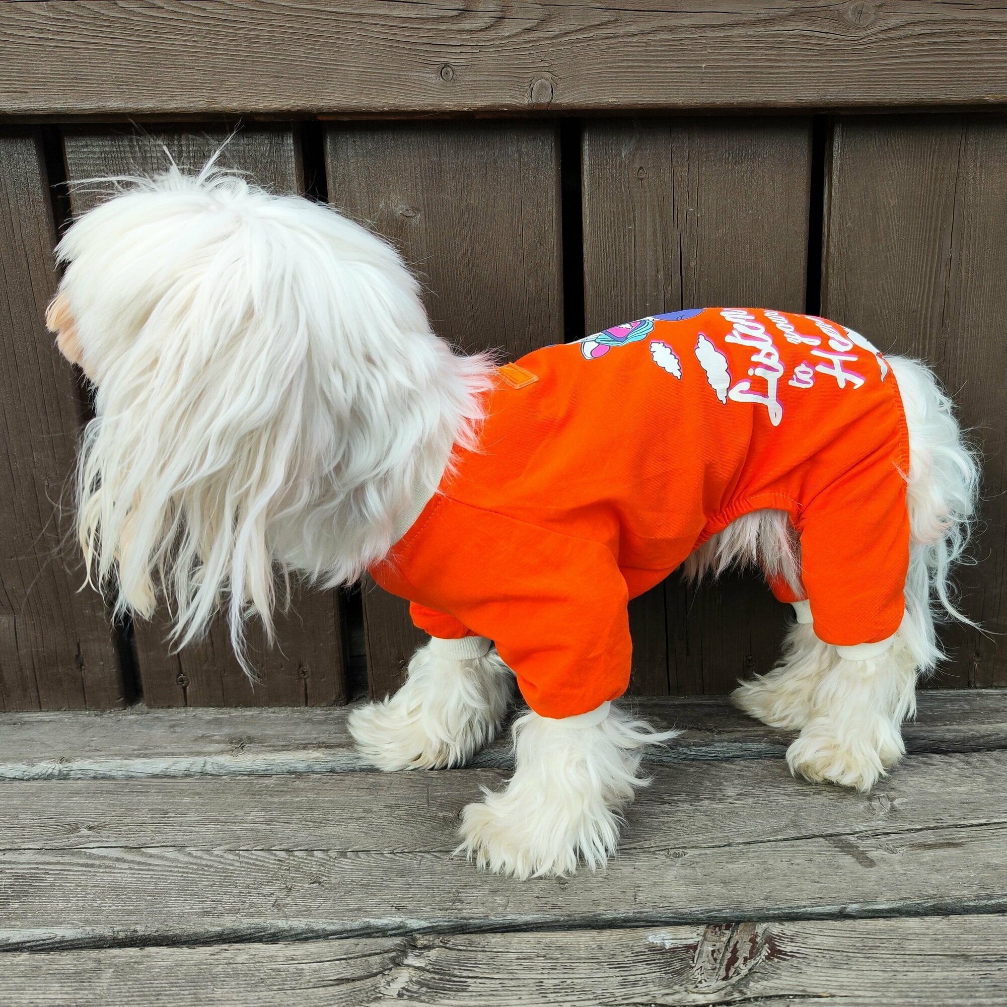 Комбинезон-пижама для собак PAWSTAR. Размер XL. Костюм жираф. Цвет оранжевый. Хлопок 100%. Обхват груди 47-54 см. Одежда мелких и средних пород интересное: