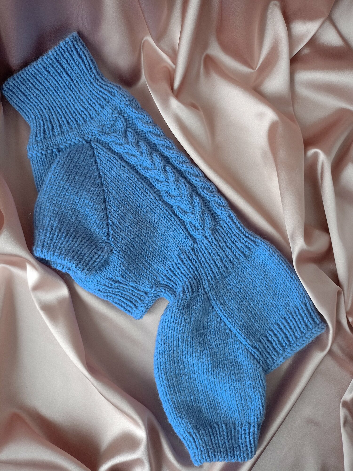 Комбинезон, свитер, вязаный, голубой, размер М, для собак мелких пород, ручная работа интересное: