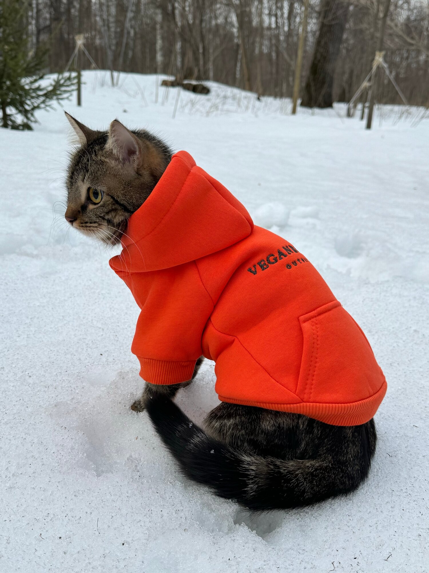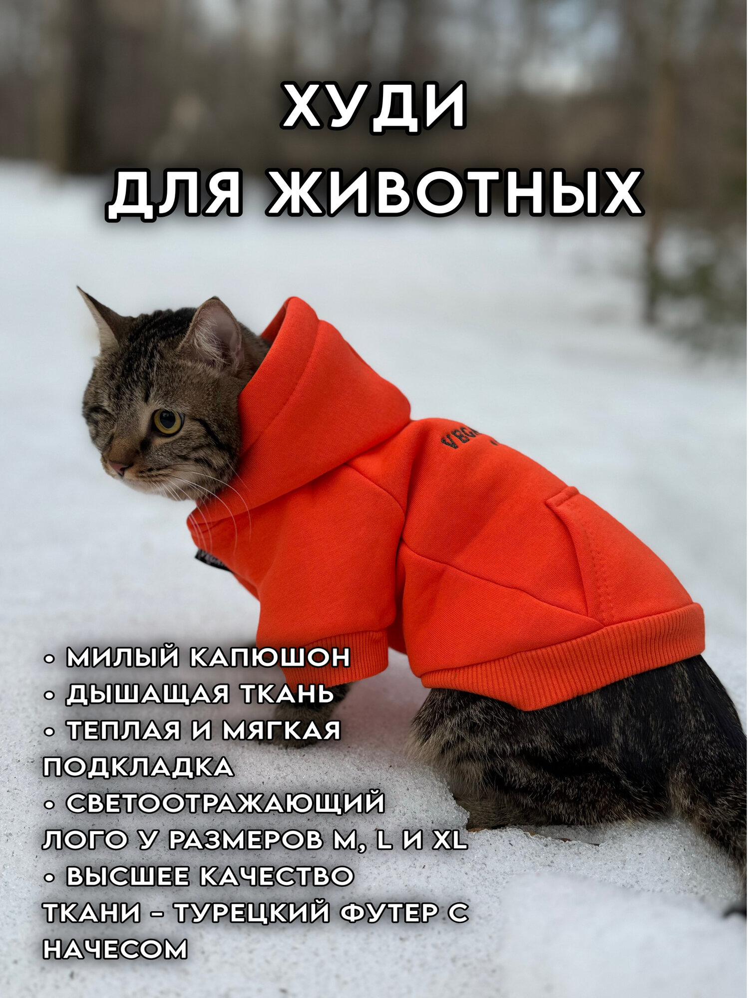 Худи для животных кошек и собак VEGANBASED Оранжевый XS/Спинка 27см