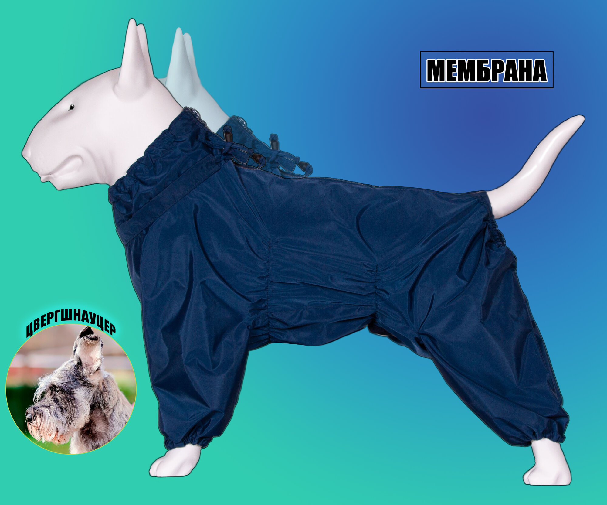 Комбинезон-дождевик для цвергшнауцера кобеля, мембрана, цвет морская волна