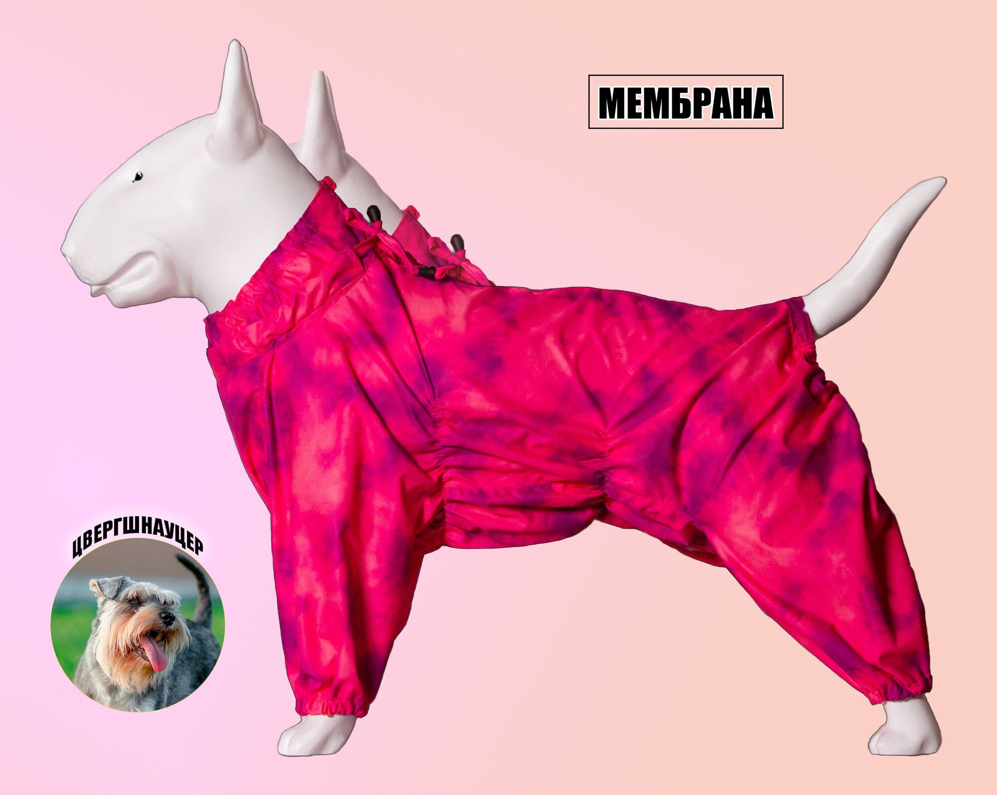 Комбинезон-дождевик для цвергшнауцера суки, мембрана, цвет розовый