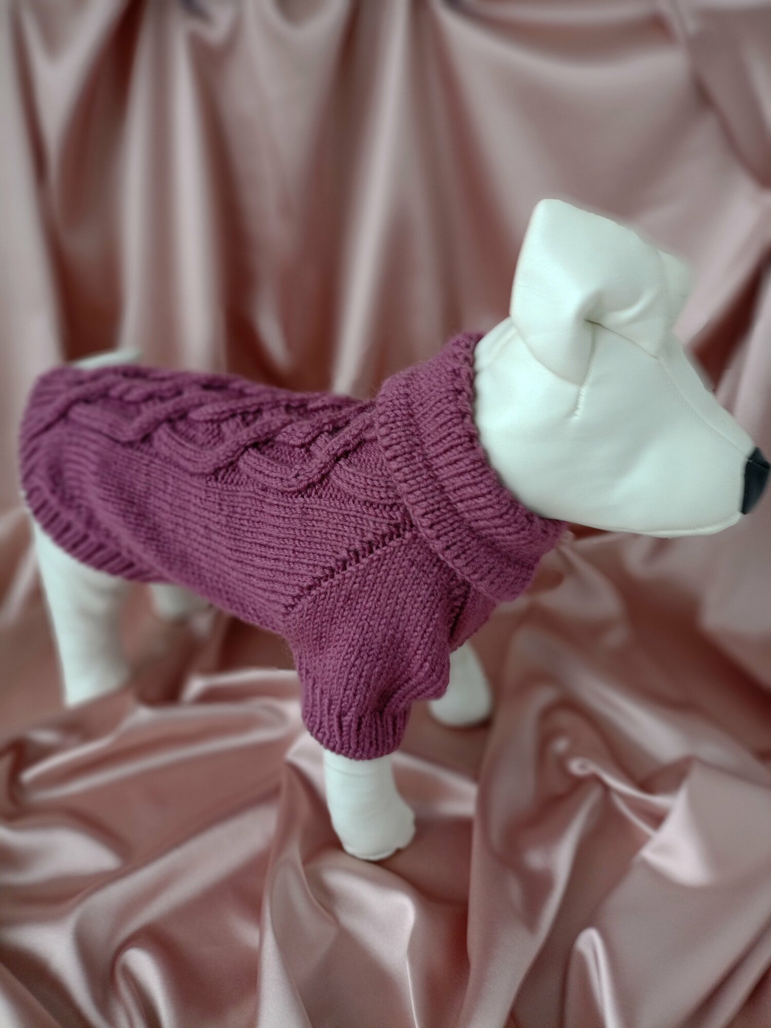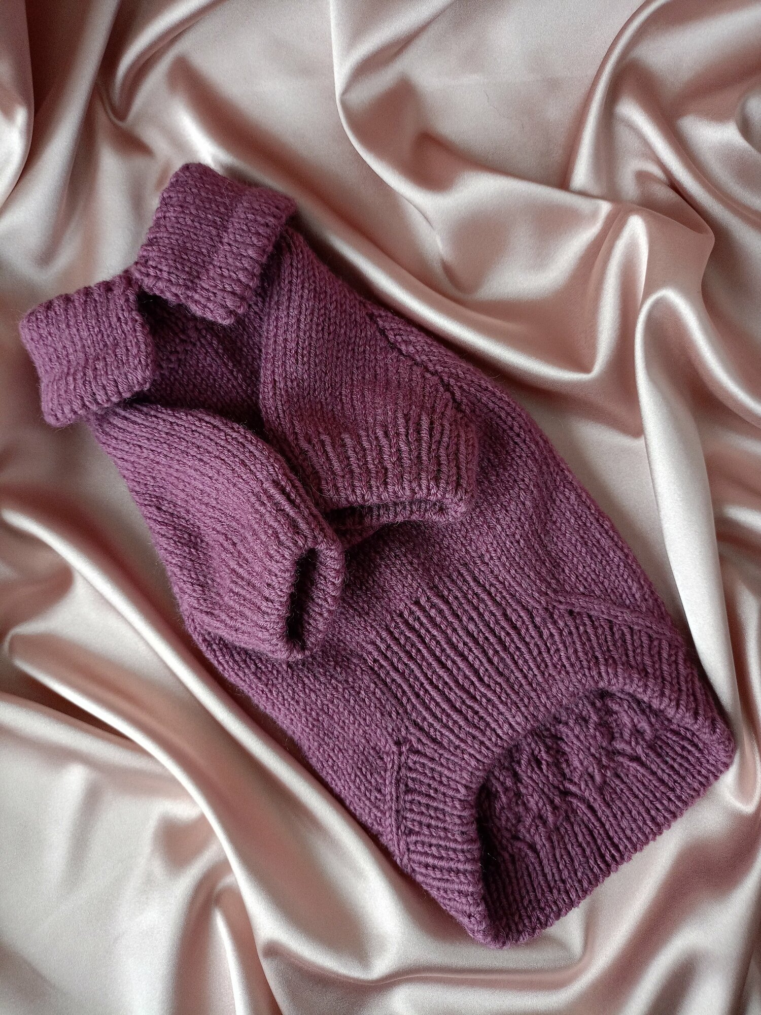 Свитер вязаный, сиреневый, размер М, ручная работа, одежда для собак мелких пород. интересное: