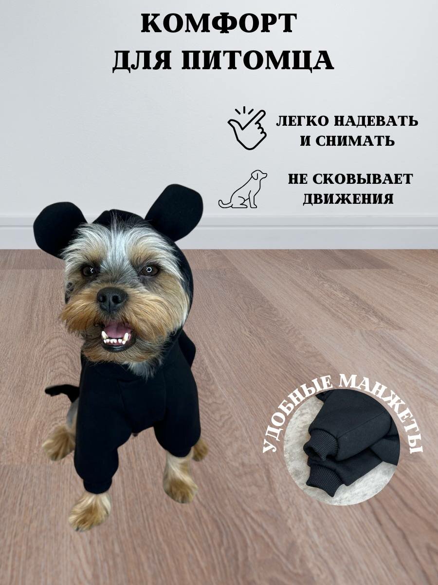 Толстовка с ушками для собак черная SPLOOT, размер М, длина спины 31 см интересное: