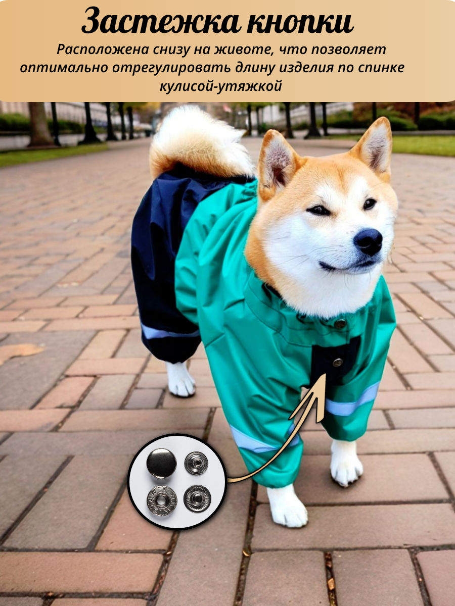 Комбинезон дождевик для собак средних и крупных пород с регулировкой размера 50-60см Green/black интересное: